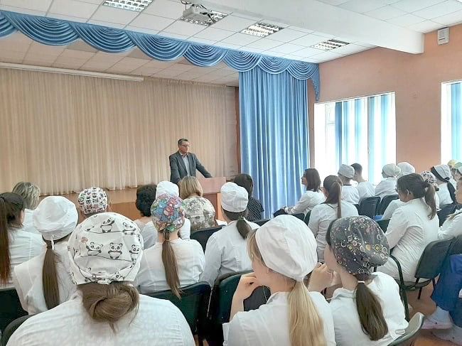 Главный врач Зеленодольской ЦРБ Рамиль Мухаматдинов встретился с выпускниками Зеленодольского медицинского колледжа, обучающимися по специальностям «Сестринское дело» и «Лечебное дело».