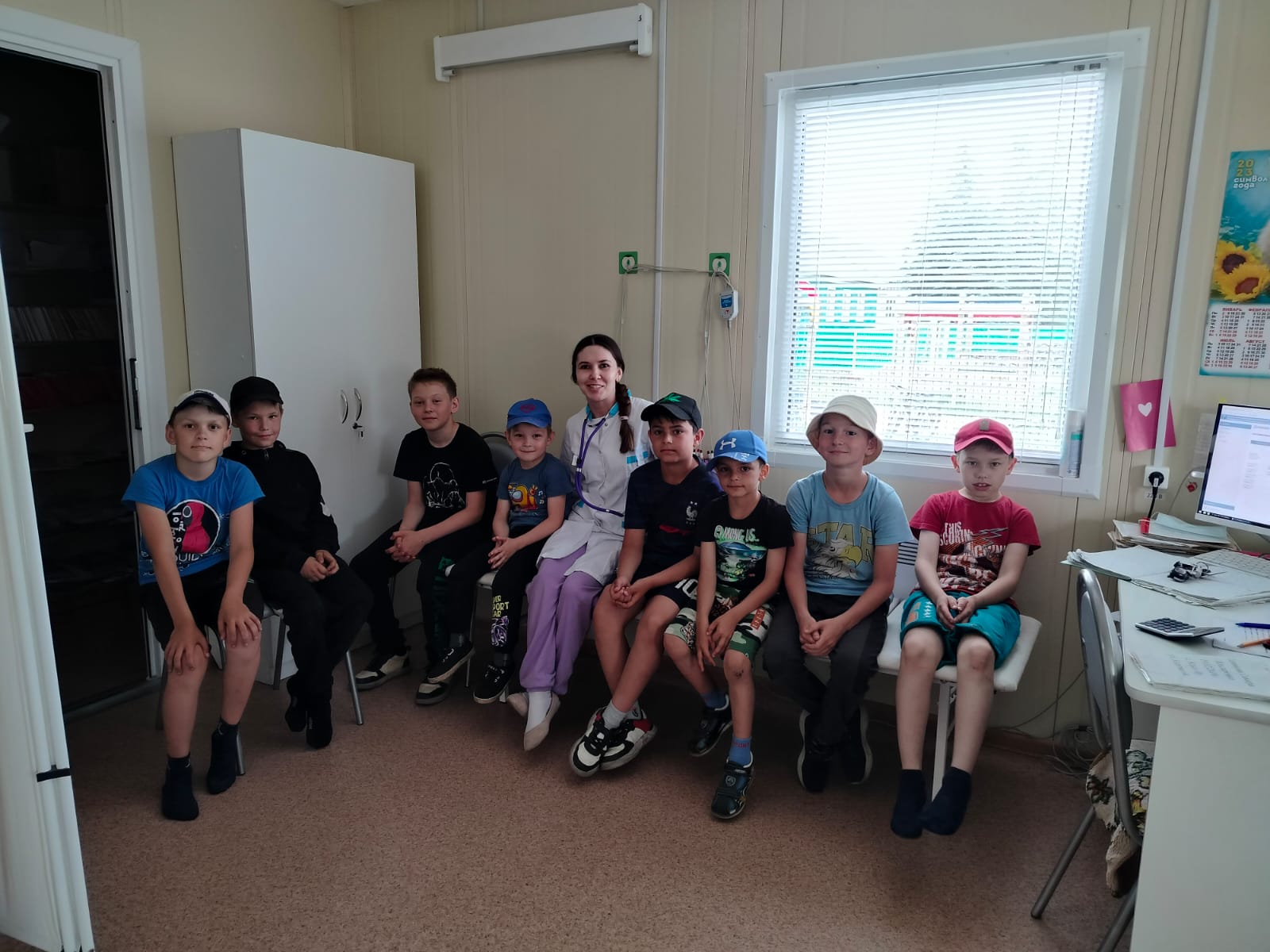 Детям провели экскурсию по ФАП, рассказали о своей работе, показали медицинское оборудование, провели интересную беседу о здоровом образе жизни, закаливании, о профилактике теплового и солнечного удара.