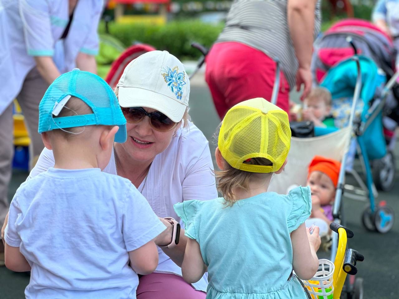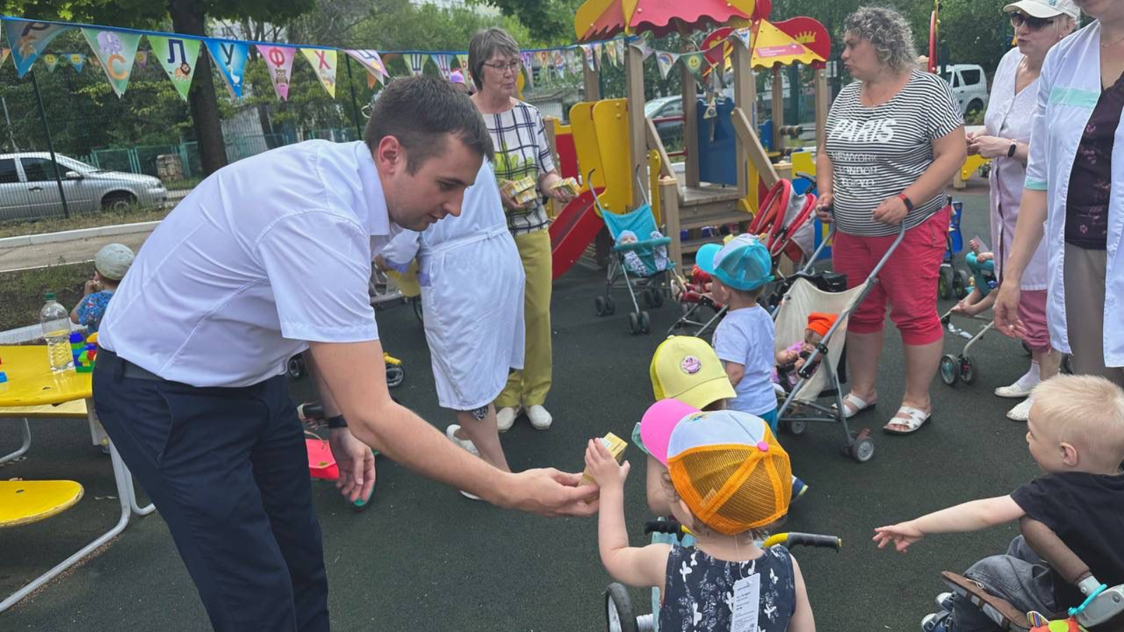Детей мы застали во время прогулки, воспитатели играли с ними на хорошо оборудованной площадке. Алмаз Дамирович познакомился и пообщался с малышами, подарил подарки, которые с любовью подбирали неравнодушные сотрудники онкоцентра. Всего в Доме ребенка 47 воспитанников, их возраст варьируется от еще совсем грудничков до 4-летних детишек.