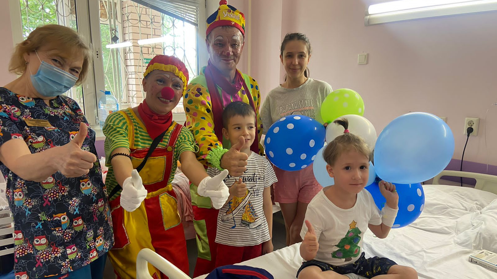 Врачи Республиканской клинической инфекционной больницы имени профессора А.Ф. Агафонова организовали поздравление для пациентов детских отделений в Международный день защиты детей. Медицинские работники в образе клоунов прошлись по отделениям и подарили малышам раскраски и блокноты. Дети были рады такому празднику. Хорошее настроение – залог успешного выздоровления.