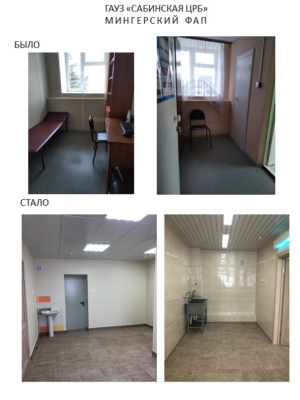 Тоже самое сделано в Мингерском ФАПе. В зданиях заменены потолки, полы, выкрашены стены или выложены плиткой, заменена сантехника, завезена новая мебель.