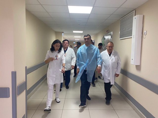 Камский детский медицинский центр Набережных Челнов с ознакомительным визитом посетил министр здравоохранения РТ Марсель Миннуллин. Его сопровождали руководитель исполкома города Фарид Салахов, руководитель Управления здравоохранения Рустам Нугманов и главный врач КДМЦ Альберт Хаертдинов.
