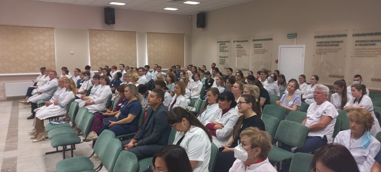 С приветственными словами заседание открыл главный врач: «Рад приветствовать вас в стенах нашей клиники в новом качестве. Вы закончили вуз и определились с профессией. Сейчас Вам предстоит 2 года упорной работы, чтобы стать профессионалами в выбранной сфере медицины, вы проходите обучение в одной из лучших клиник России. У нас работают специалисты высшего класса. Заведующие отделениями, которые сейчас находятся в зале будут Вашими наставниками в течении 2 лет. Мы рады вливанию молодых специалистов на наши ряды. И специалисты, и я лично открыты для общения! Надеюсь на плодотворную совместную работу и жду вас в качестве специалистов на работу в дальнейшем»