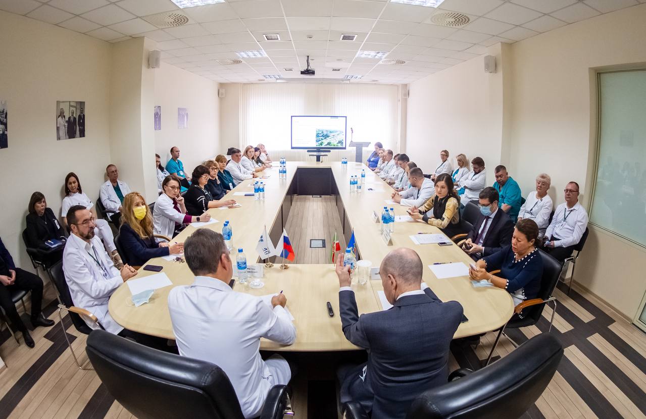 Также было проведено рабочее совещание, где обсуждено сотрудничество и взаимодействие между БСМП и Центром Шумакова, которое позволяет спасать пациентов, нуждающихся в донорской трансплантации органов. Центр имеет богатый опыт и возможности в области пересадки печени, сердца, почки, поджелудочной железы.