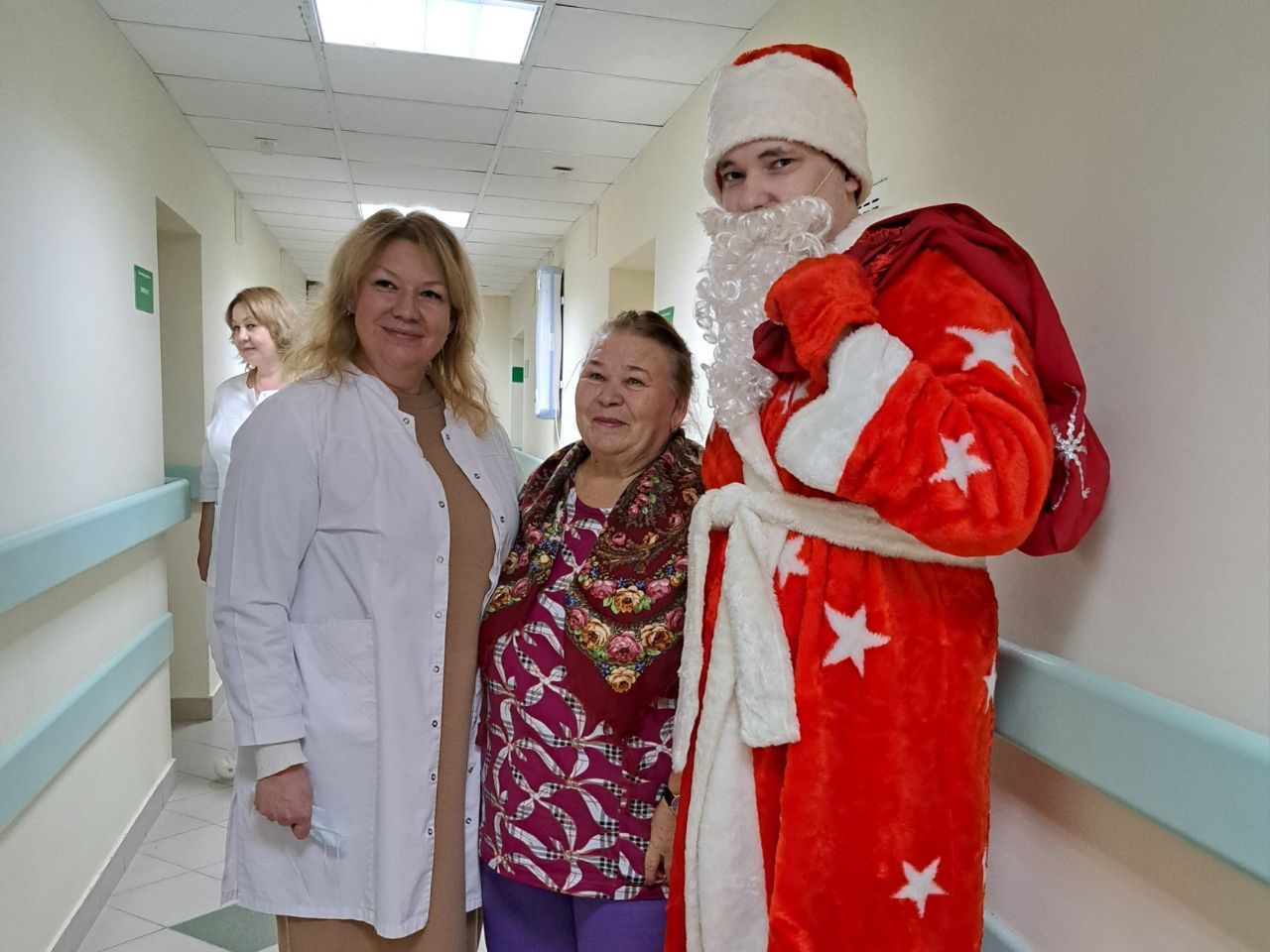 Веселье и радость наполнили палаты стационара Госпиталя для ветеранов войн г. Набережные Челны, когда Дед Мороз и Снегурочка решили сделать особенный визит, чтобы поздравить пациентов с наступающим Новым Годом. Главных героев наступающего праздника сопровождала главный врач Резеда Ришатовна Мавзютова.