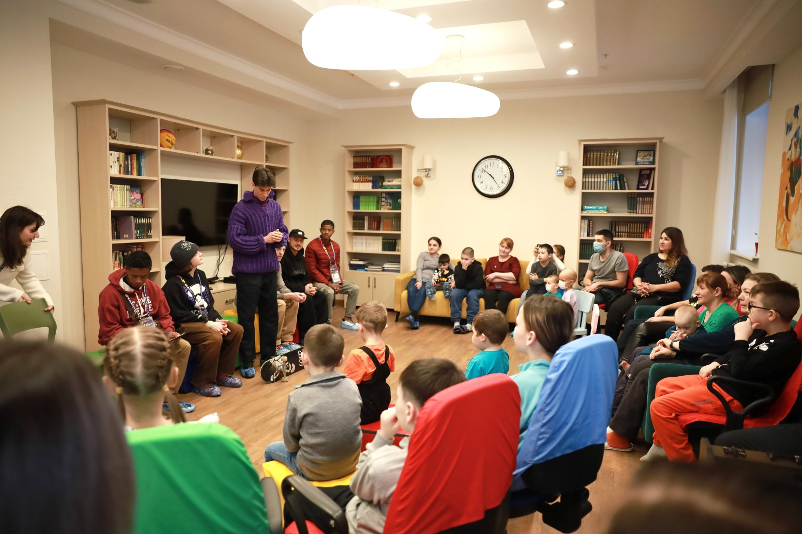Вместе с российскими участниками Дом посетили скейтбордисты из Мадагаскара «Ugamadar Sk8 Brigade» с Лофо Нирина и Андриан-Сиферана, который также приехали на международный мультиспортивный турнир «Игры Будущего». Спортсмены научили детей стоять на скейтборде и подарили множество эмоций.