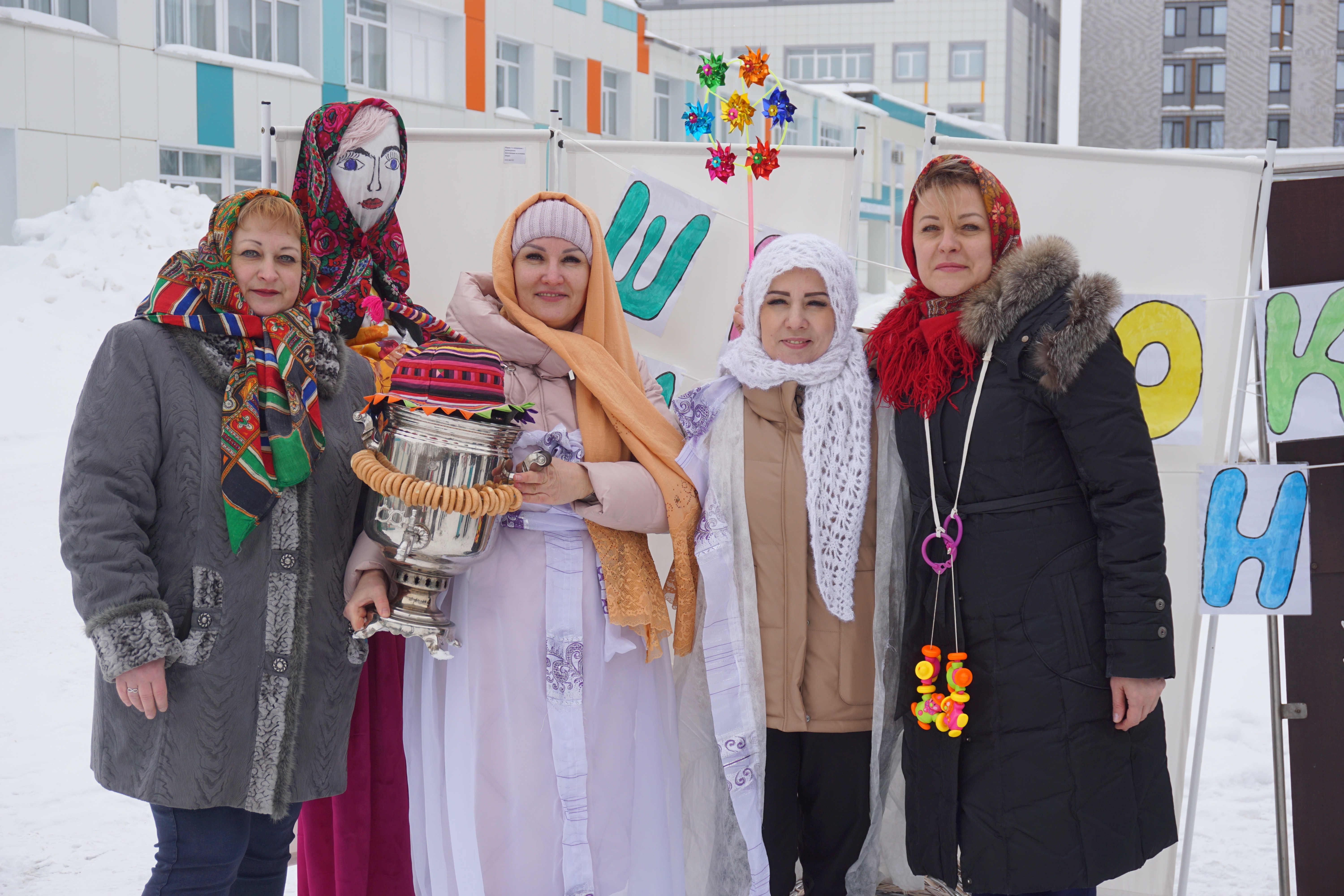 Широкую Масленицу развернули на улице у входа в консультативно-диагностическую поликлинику.