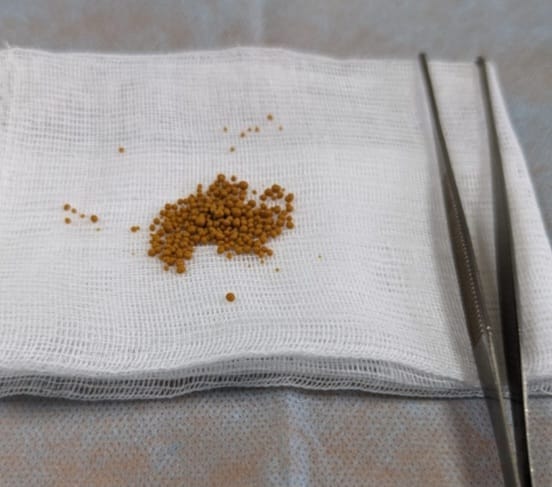 Опытный врач объяснил, что причиной камнеобразования в данном случае была аденома предстательной железы, осложненная хронической задержкой мочи. Из-за застоя мочи в мочевом пузыре образовались мелкие камни, которые в последующем вырастают до больших размеров. Рекомендуем мужчинам ежегодно проходить осмотр у врача-уролога. Без своевременной диагностики и лечения ситуации бывают критическими, когда может потребоваться экстренная операция. Берегите своё здоровье!