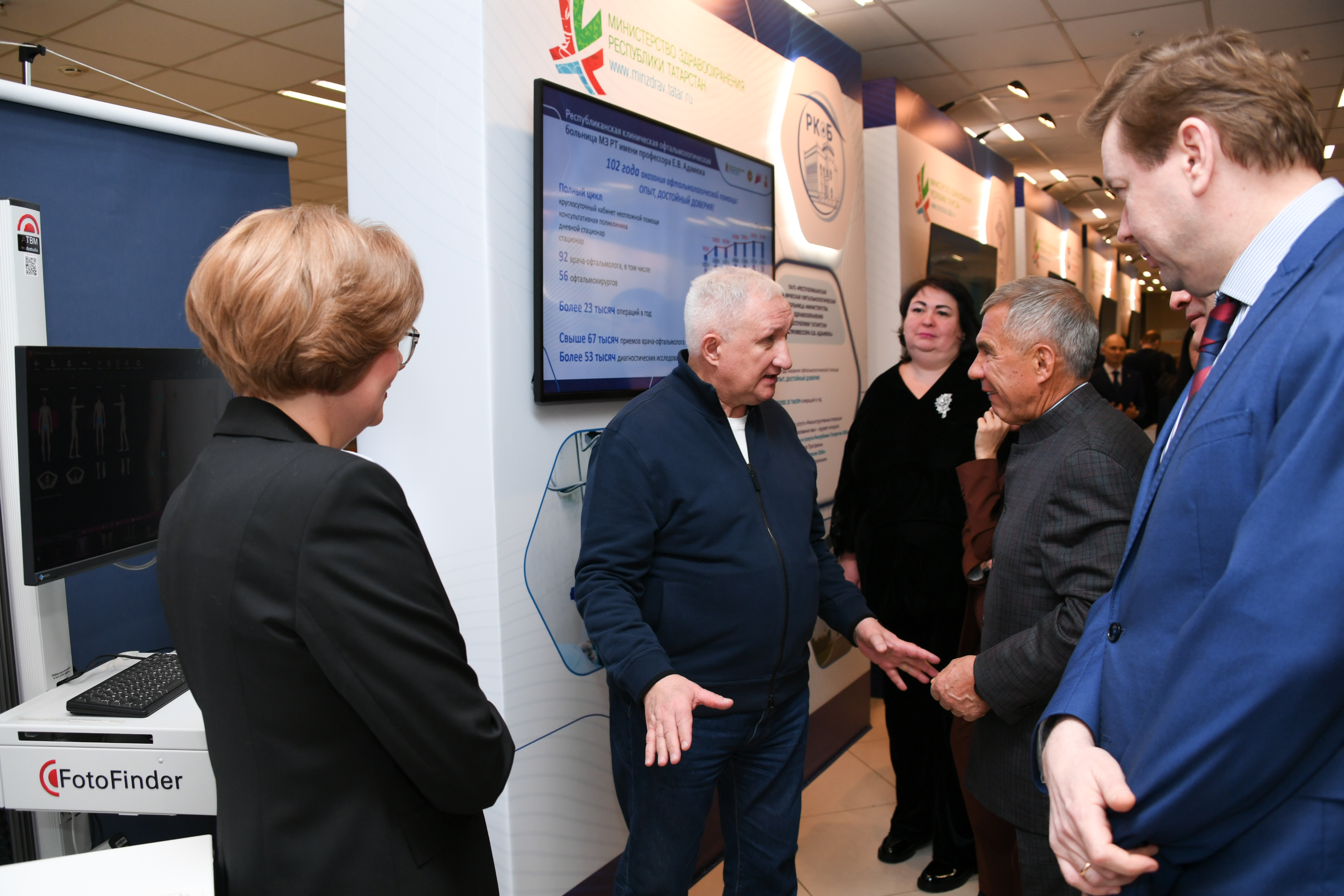 До начала коллегии Рустам Минниханов и почётные гости вручили медицинским учреждениям региона новые автомобили скорой медицинской помощи, а также ознакомились со специализированной выставкой, развернутой в холле.