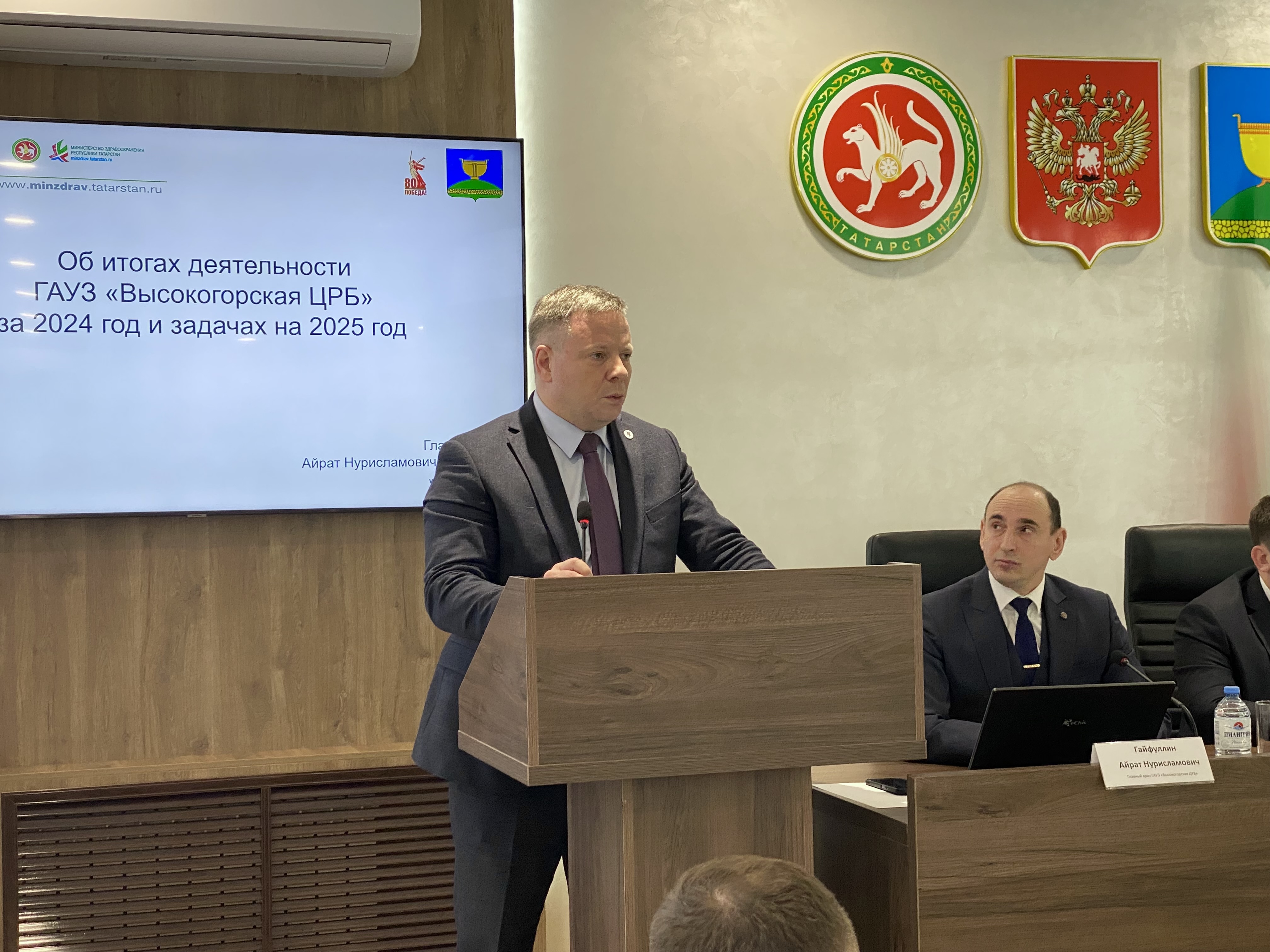 С основным докладом выступил главный врач Высокогорской ЦРБ Айрат Гайфуллин. Он проанализировал работу медучреждения и обозначил задачи на предстоящий год.