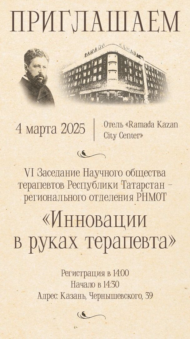 4 марта пройдет VI заседание Научного общества терапевтов Республики Татарстан «Инновации в руках терапевта». Специалисты обсудят: