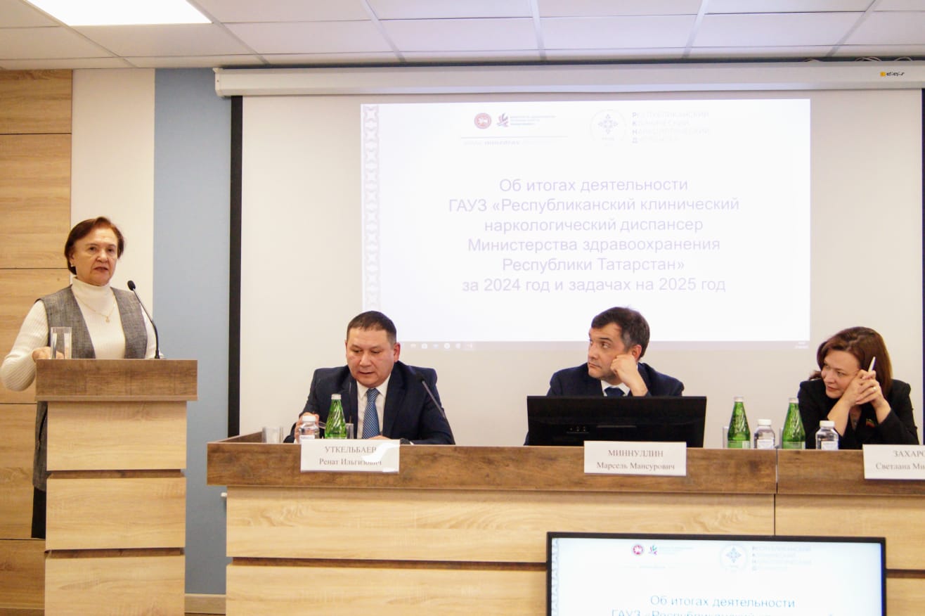 В Казани подвели итоги работы Республиканского клинического наркологического диспансера в 2024 году. Заседание прошло под председательством министра здравоохранения РТ Марселя Миннуллина. Гостями медсовета стали председатель комитета по социальной политике Госсовета РТ Светлана Захарова, начальник Управления по вопросам здравоохранения, спорта и формирования здорового образа жизни Кабинета министров РТ Раушан Зарипов, заместитель начальника управления ГИБДД по РТ Айрат Самигуллин, ответственный секретарь комиссии РКДН и ЗП Илсояр Гарифуллина, руководители профильных отделов министерства здравоохранения РТ, а также сотрудники диспансера.