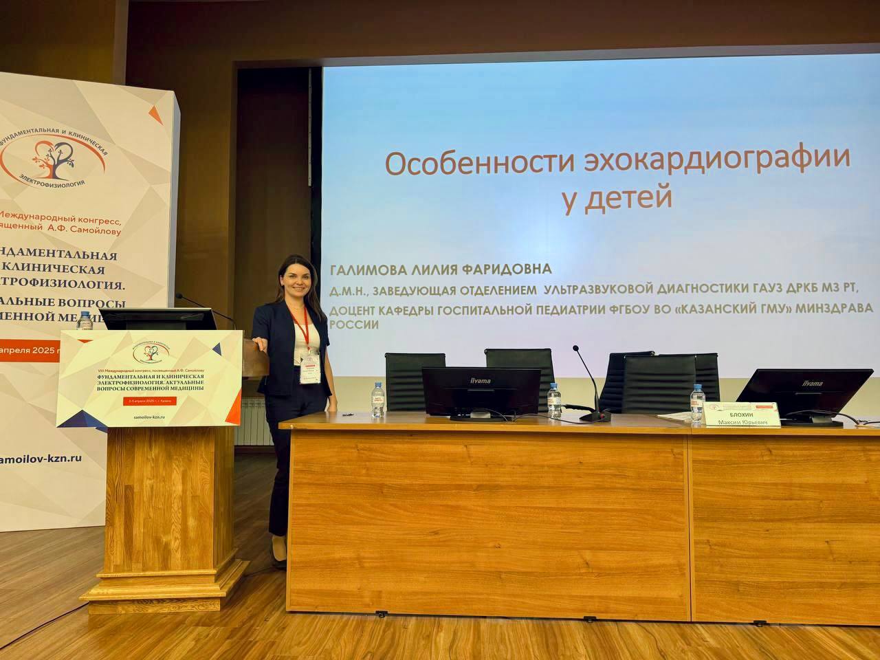 Заведующая отделением УЗИ Лилия Галимова представила доклад, посвященный особенностям эхокардиографии в детском возрасте.