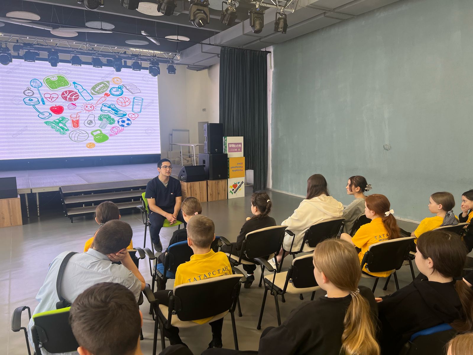 В своем выступлении Азат Фаритович рассказал ребятам о важности правильного питания, о роли белков, углеводов, жиров, витаминов и минералов в формировании и роста ребенка. Также рассказал про их положительное влияние и поддержку организма во время учебы, занятий спортом и экзаменов.