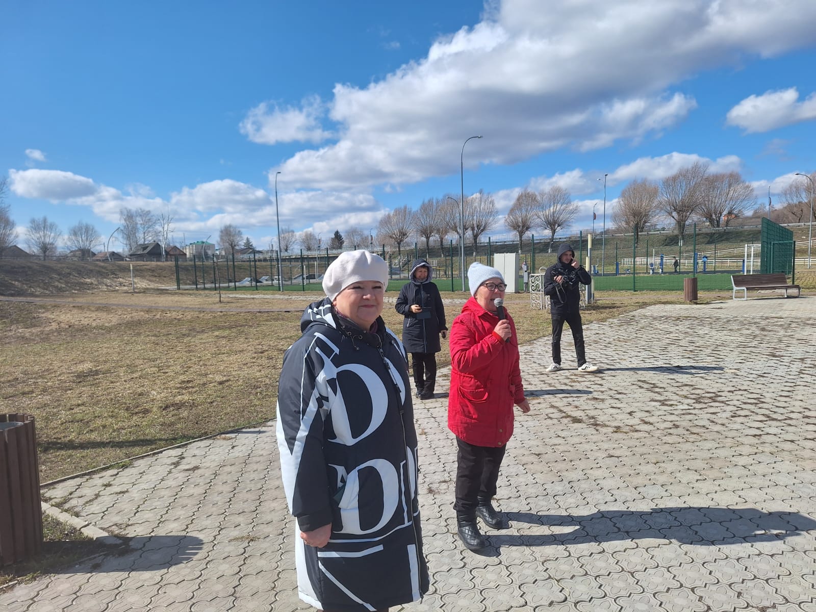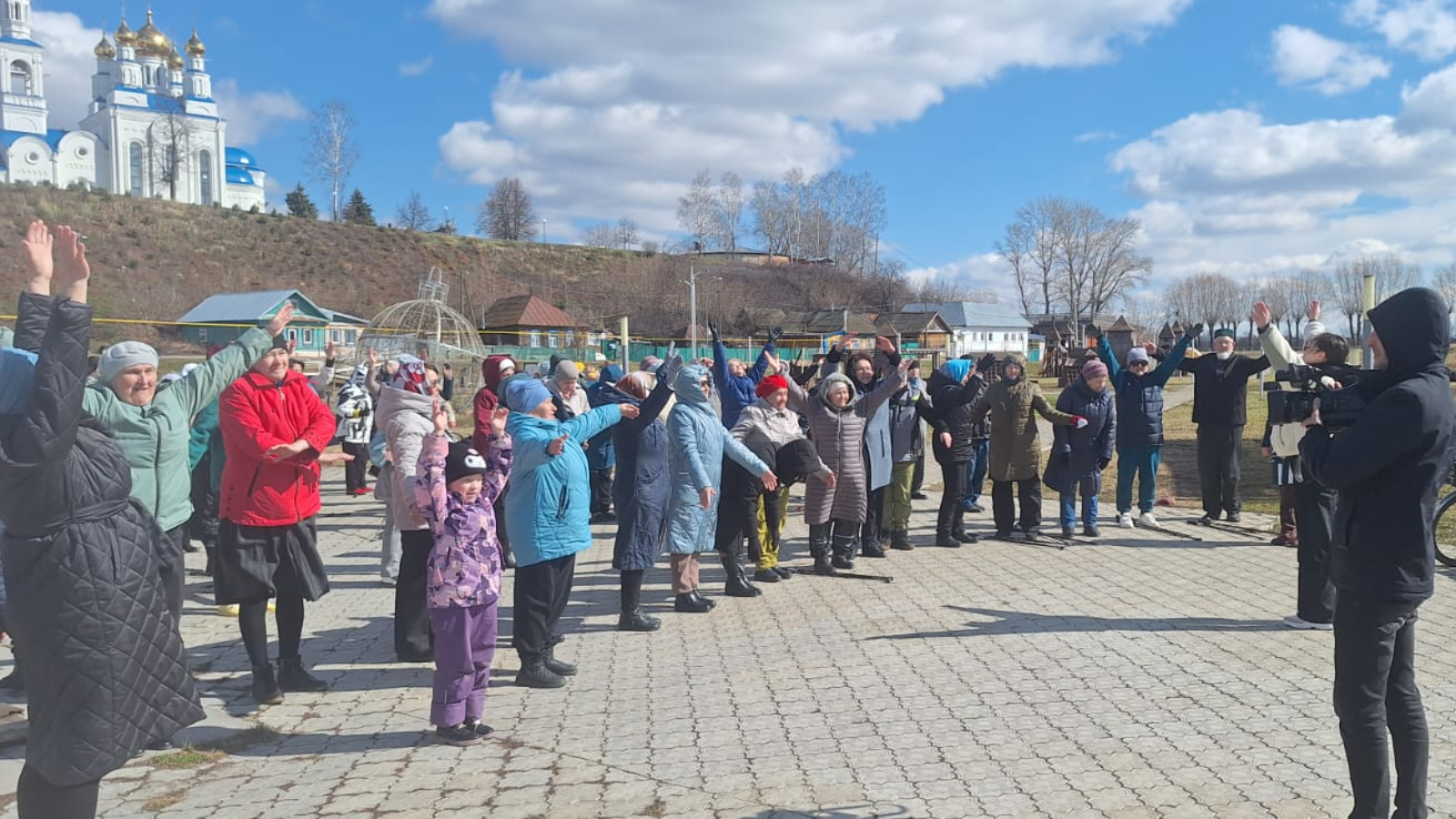 Перед прогулкой участники акции под энергичную музыку выполнили физические упражнения, потом пошли веселым строем на прогулку, «покорять» 10 000 шагов.
