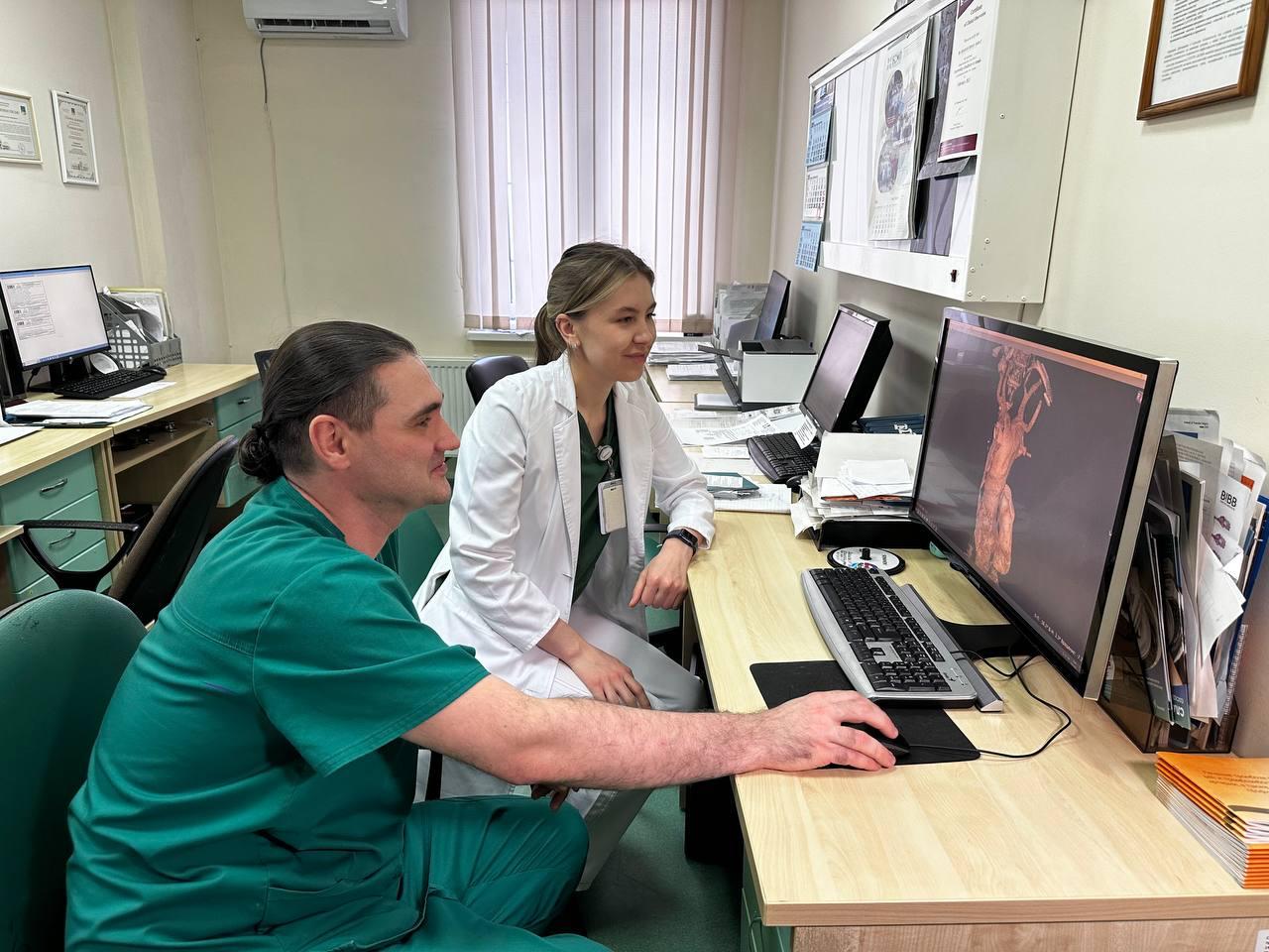 В БСМП пациентку взяли на операционный стол для установки специального протеза сосуда - стент-графта. Это тонкая металлическая сетка, покрытая тканью. Протез доставляется через малый доступ при помощи проводника в свернутом виде, а после установки раскрывается. Устройство позволяет изолировать область язвы аорты от кровотока.