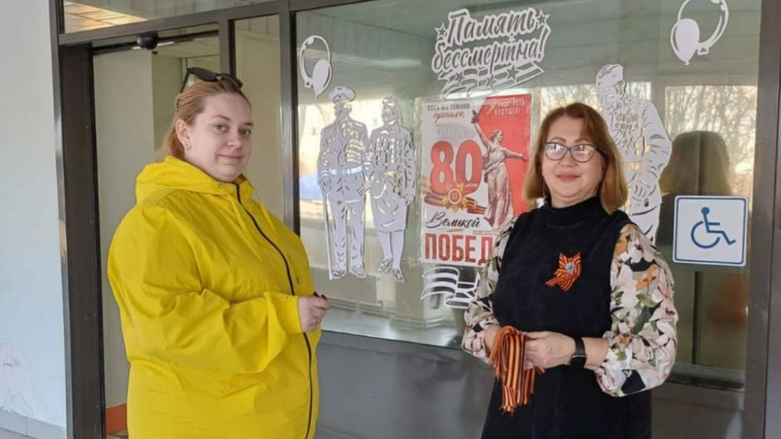 Георгиевские ленты раздавали в детской поликлинике и травматологии, напоминая посетителям о подвиге советского народа.