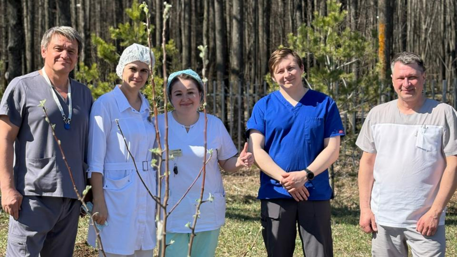 На территории РКИБ сегодня высадили саженцы яблони и груши. Так врачи и медсестры отметили 40-летие отделения анестезиологии-реаниматологии.