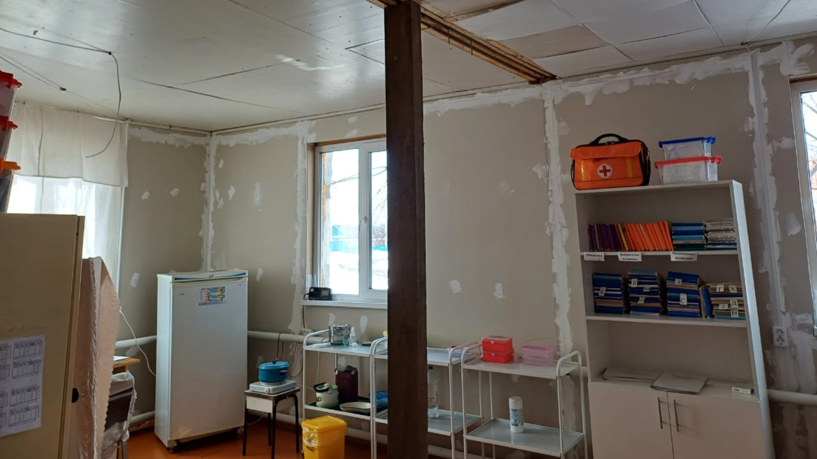 В рамках программы модернизации первичного звена здравоохранения национального проекта «Продолжительная и активная жизнь» здесь полным ходом идет капитальный ремонт здания.
