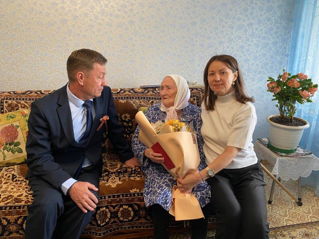 Главный врач ГАУЗ «Городская поликлиника №4 им. Л.Н. Ганиевой» г.Наб.Челны Равиль Рустамович Бакиров с делегатами накануне праздника Великой Победы посетили на дому бывших работников поликлиники, тружеников тыла Великой Отечественной Войны Димухаметову Мубину Хабибулловну и Виноградову Клавдию Кузьминичну, чтобы поздравить их с праздником.