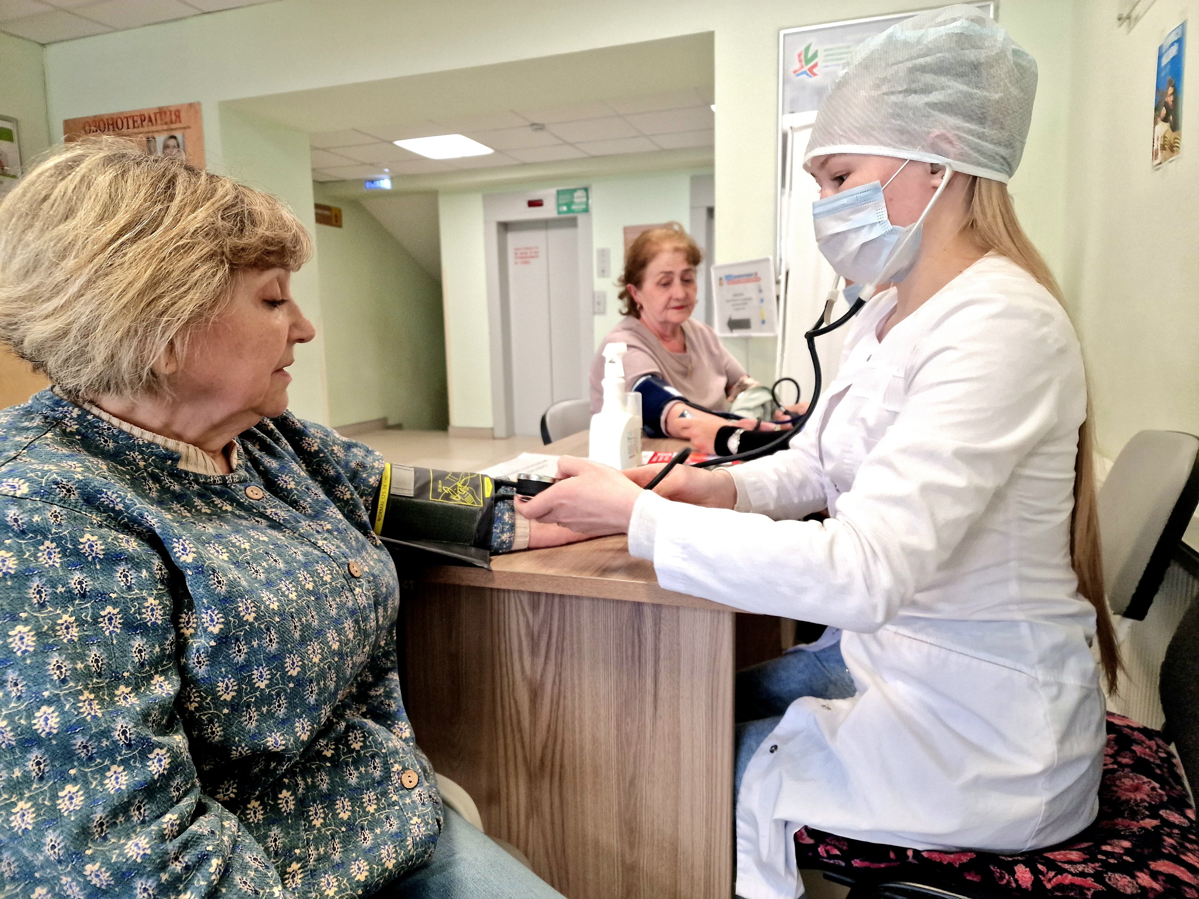 В холле поликлиники пациентам измерили артериальное давление, раздали буклеты и провели консультации по профилактике развития сердечно-сосудистых заболеваний. Рассказали о первых признаках артериальной гипертензии, о важности соблюдения принципов здорового образа жизни.