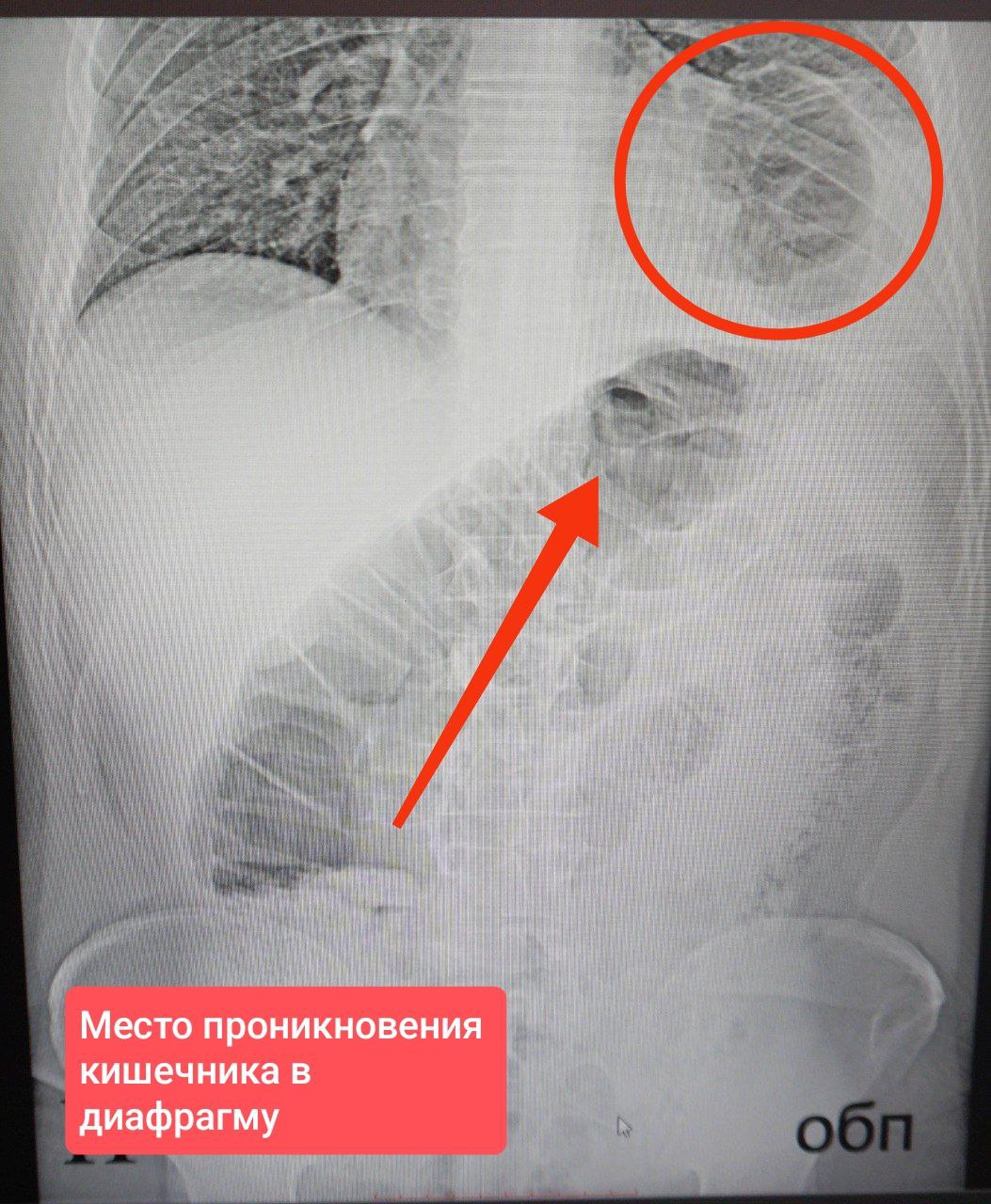 Оказалось, у мужчины была ущемленная грыжа диафрагмы – редкое состояние, при котором органы брюшной полости через отверстие в диафрагме попадают в грудную клетку.