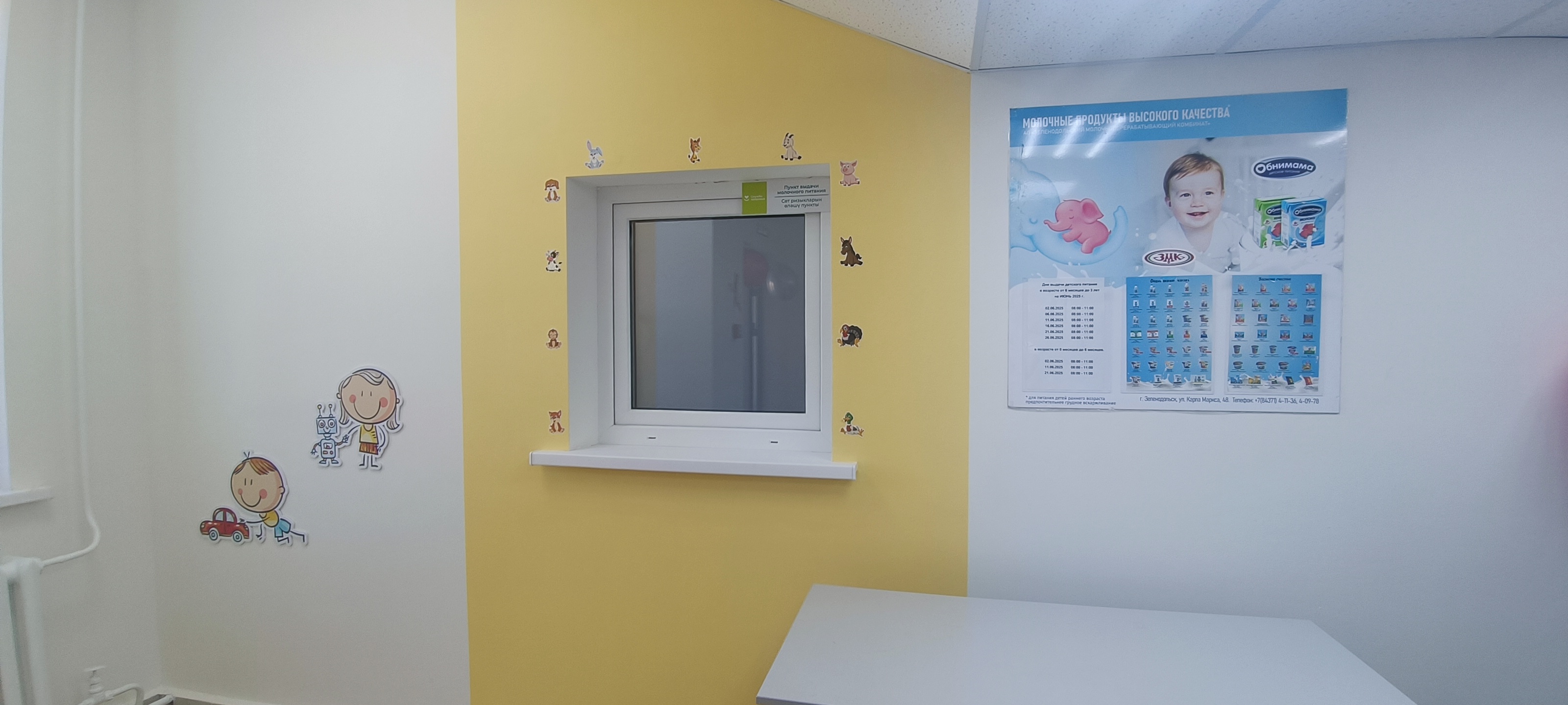 Вся внутренняя отделка выполнена из современных материалов и выдержана в общей стилистике с детскими поликлиниками, отремонтированными по новому стандарту. Важной особенностью обновленных молочно-раздаточных пунктов стала система навигации — смонтированы узнаваемые фасадные таблички с информацией.
