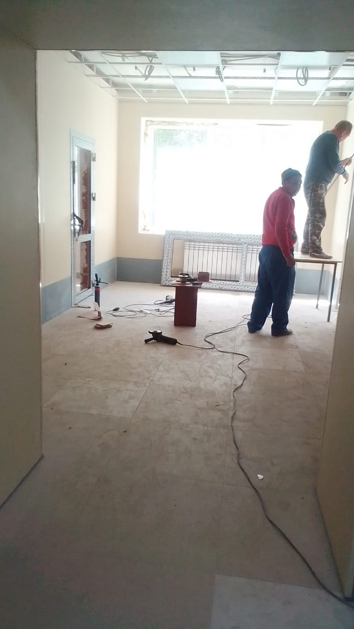 Это масштабные работы по замене системы отопления и электроснабжения. В кабинетах и холлах красят стены, обновляют полы и потолки, идёт замена окон и дверей, выполнен комплекс сантехнических работ, устанавливаются потолочные светильники и противопожарные датчики.