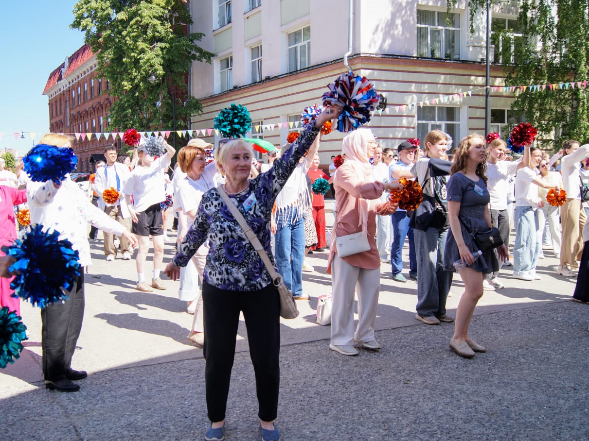 Программа включала танцевальные разминки, зарядку и общение. В рядах участников можно было заметить не только пожилых, но и молодых людей, которых также заинтересовала идея профилактики здоровья.