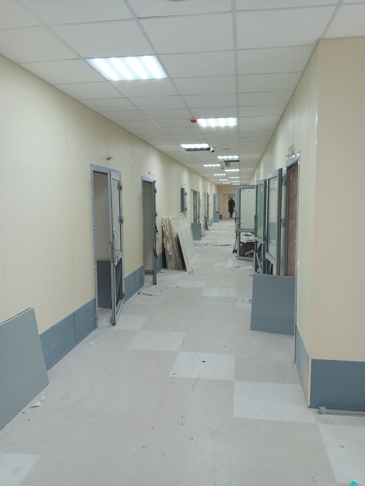 В кабинетах и холлах выкрашены стены, обновлены полы и потолки.