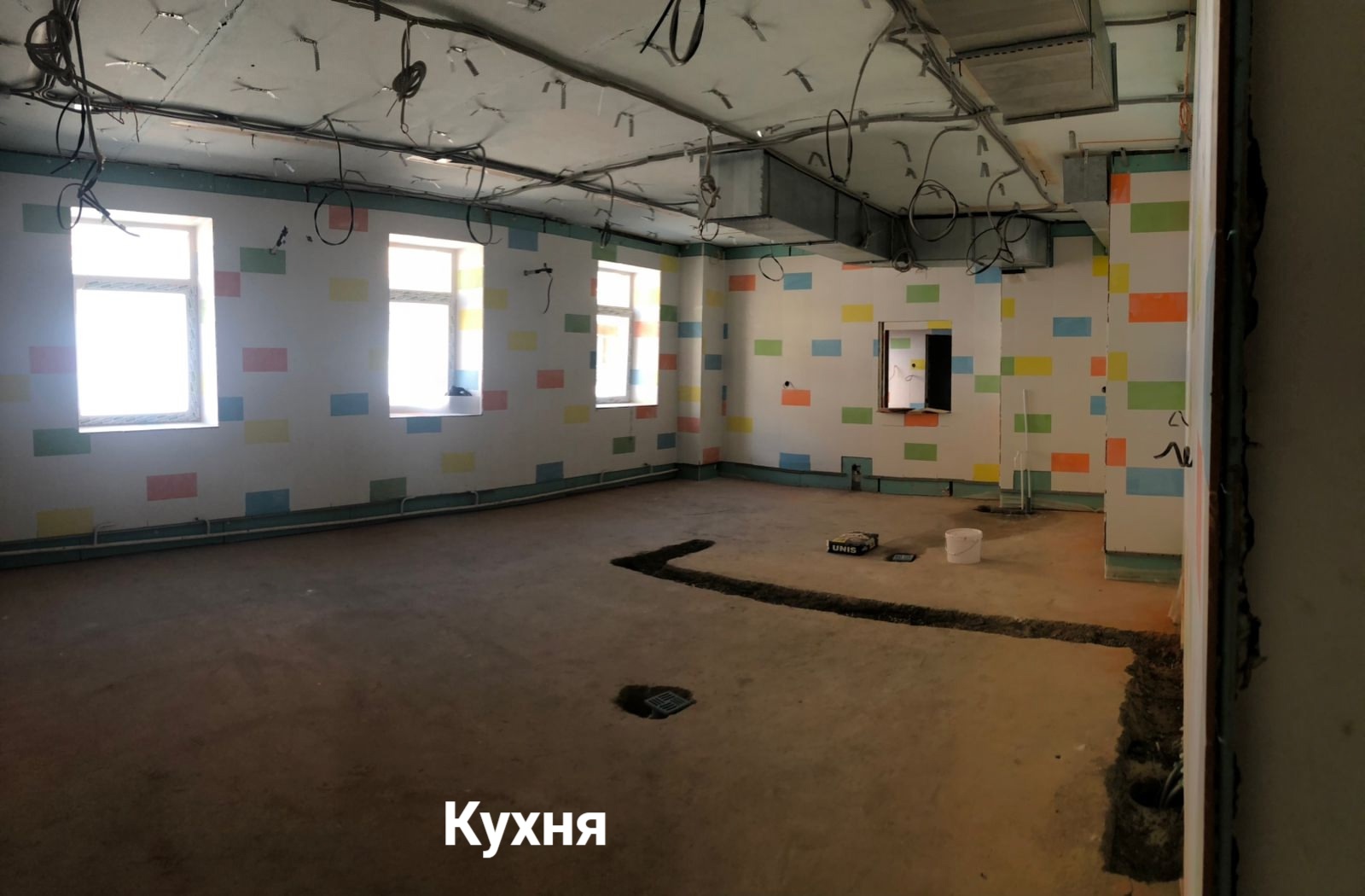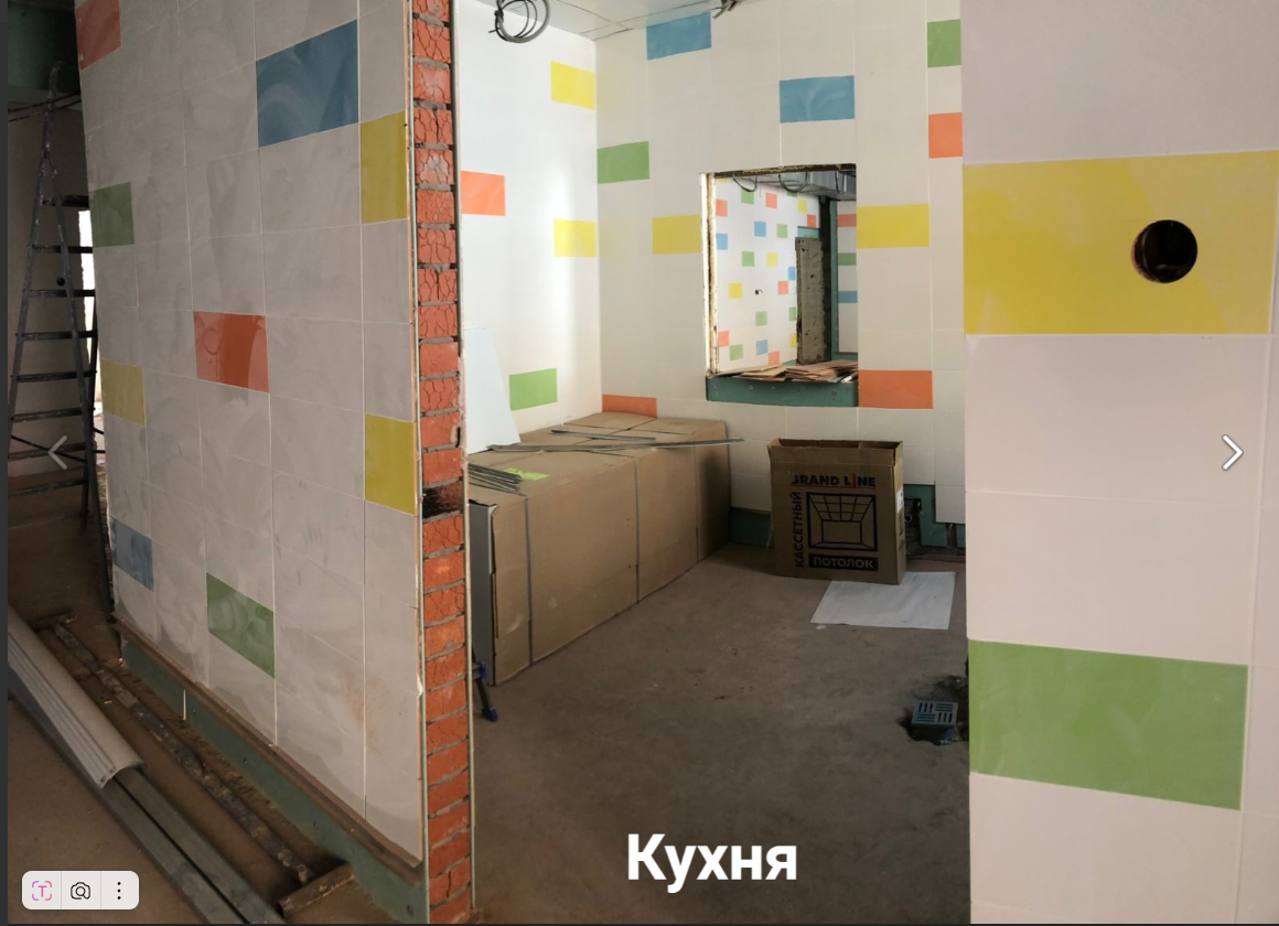 Сегодня активно ведутся работы на втором этаже хирургического отделения. Параллельно продолжается капитальный ремонт пищеблока.