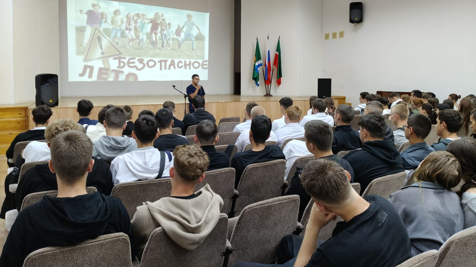 В целях предотвращения травматизма и возникновения несчастных случаев, заведующий детской консультацией ГАУЗ «Мамадышская ЦРБ», врач – педиатр Азат Фаритович Валиуллин провел лекцию для учащихся колледжа на тему «Опасность обезвоживания и перегрева. Пищевое отравление. Оказание первой помощи», где рассказал, как оказывать первую медицинскую помощь при отравлениях, солнечном ударе, также напомнил ребятам о правилах поведения около водоемов, в лесу и в других популярных местах отдыха.