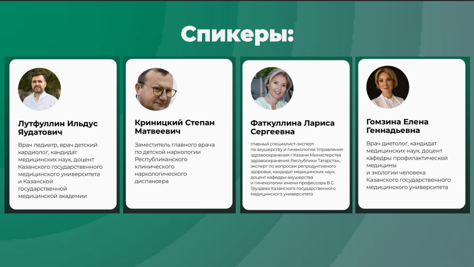 Сегодня выступили 3 врача. Фаткуллина Лариса Сергеевна, Криницкий Степан Матвеевич и Лутфуллин Ильдус Яудатович осветили очень важные темы: быстрый дофамин, его опасность и пути получения правильного дофамина, которые не разрушают здоровье; опасность ожирения, способы измерения индекса массы тела и других показателей, сигнализирующих об избытке жировых тканей в организме; репродуктивное здоровье – как о нём заботиться, как сохранить на долгое время, как на него влияют обычные привычки и гигиена. Выступления врачей дополнял пластический театр «Пластинка», который помог превратить обычный лекторий в зрелищную шоу-конференцию.