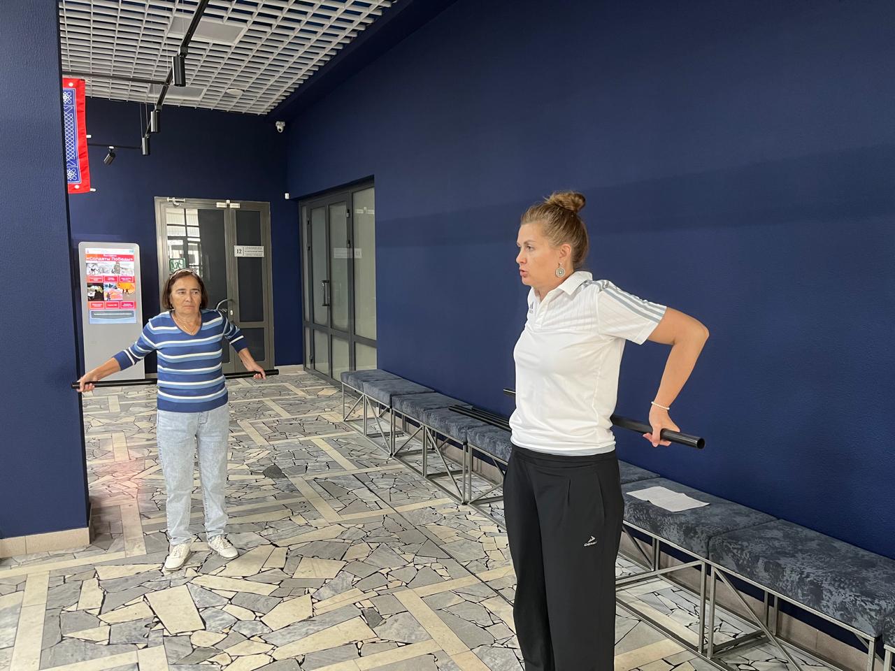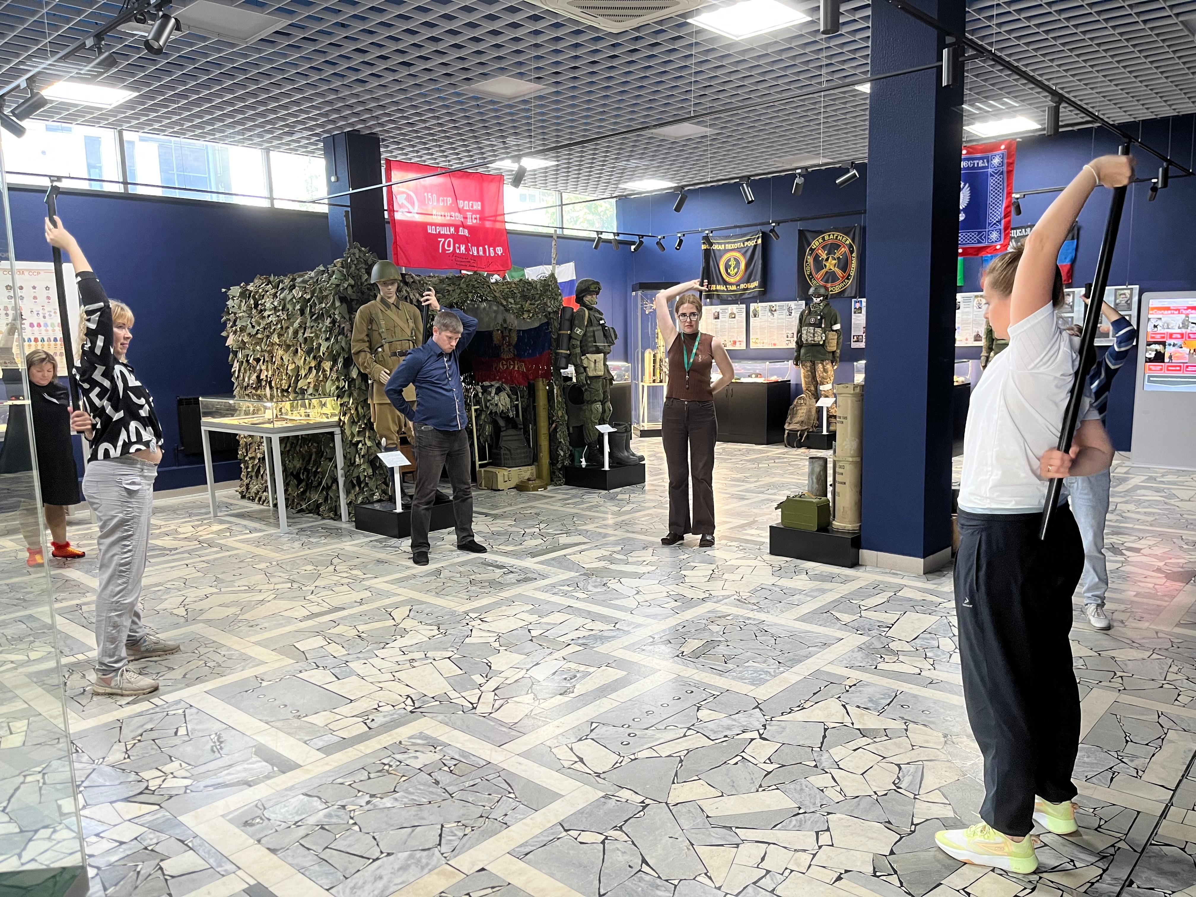 В рамках корпоративной программы «Укрепление здоровья на рабочем месте» инструктор-методист по лечебной физкультуре Врачебно-физкультурного диспансера Инна Шабанова провела для музейных работников комплекс упражнений, направленный на профилактику заболеваний шейно-грудного отдела позвоночника и улучшение подвижности плечевого пояса.