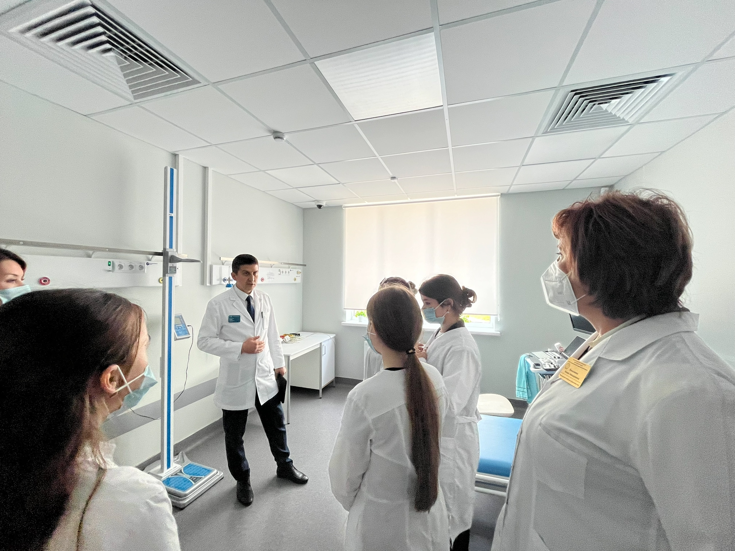 Ученики 11-го класса средней общеобразовательной школы № 20 г.Альметьевска, участники проекта «Медицинские классы» в Татарстане, вместе с классным руководителем Ольгой Михайловной Назаровой, руководителем ГАПОУ «Альметьевский медицинский колледж» Дилярой Тальгатовной Бешимовой и заведующей вторым учебным отделением Кларой Авхадиевной Николаевой посетили Альметьевскую ЦРБ.
