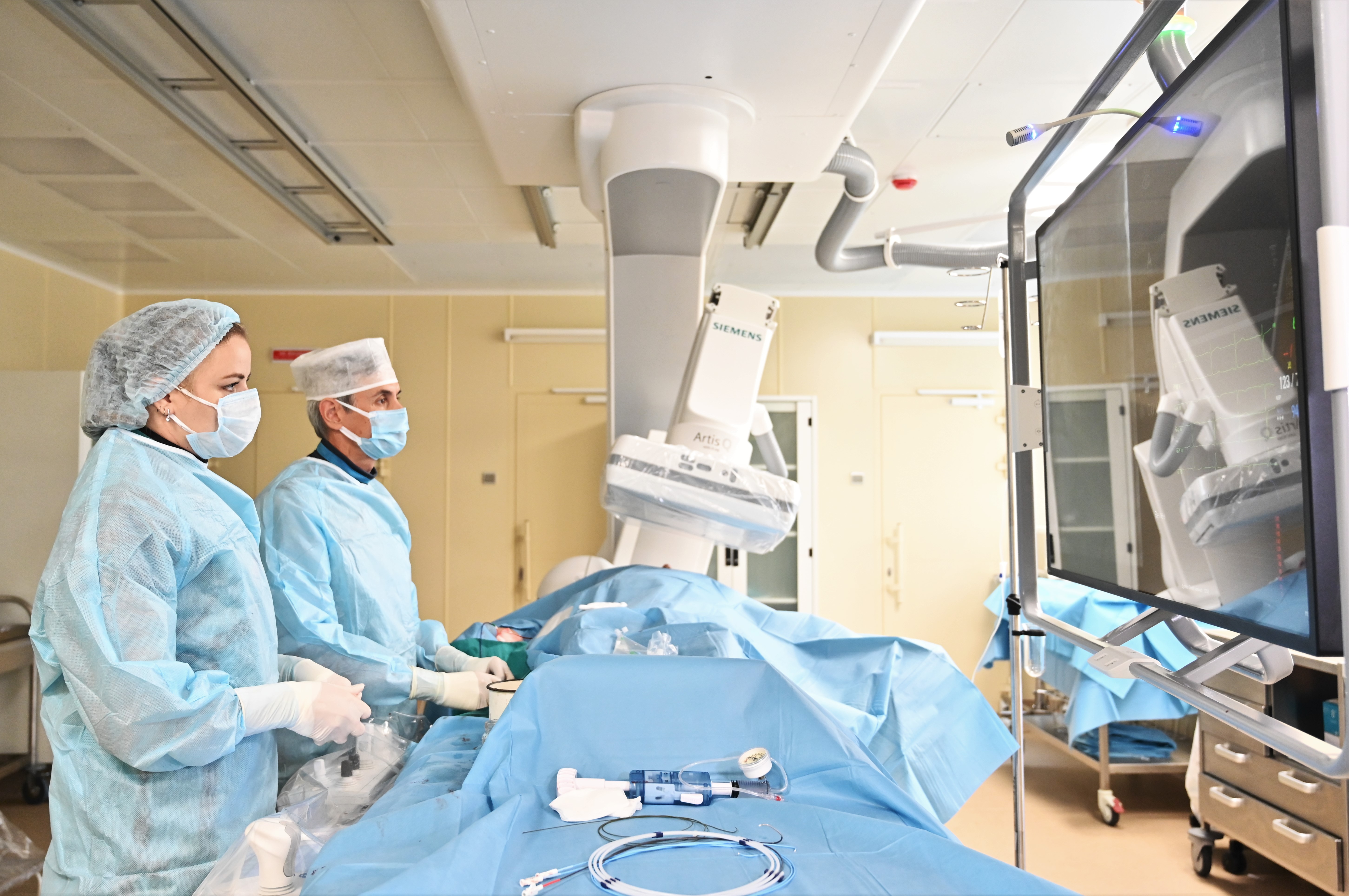 Новейший ангиограф позволяет решать разнообразные задачи в борьбе с угрожающими жизни состояниями: острым инфарктом миокарда, острым инсультом, остро возникших блокадах сердца. В круглосуточном режиме будут проводиться операции стентирования коронарных артерий, тромэкстрации из сосудов головного мозга и стентирования сонных, периферических артерий, имплантации электрокардиостимуляторов, кардиовертеров дефибрилляторов и устройств для сердечной ресинхронизирующей терапии.