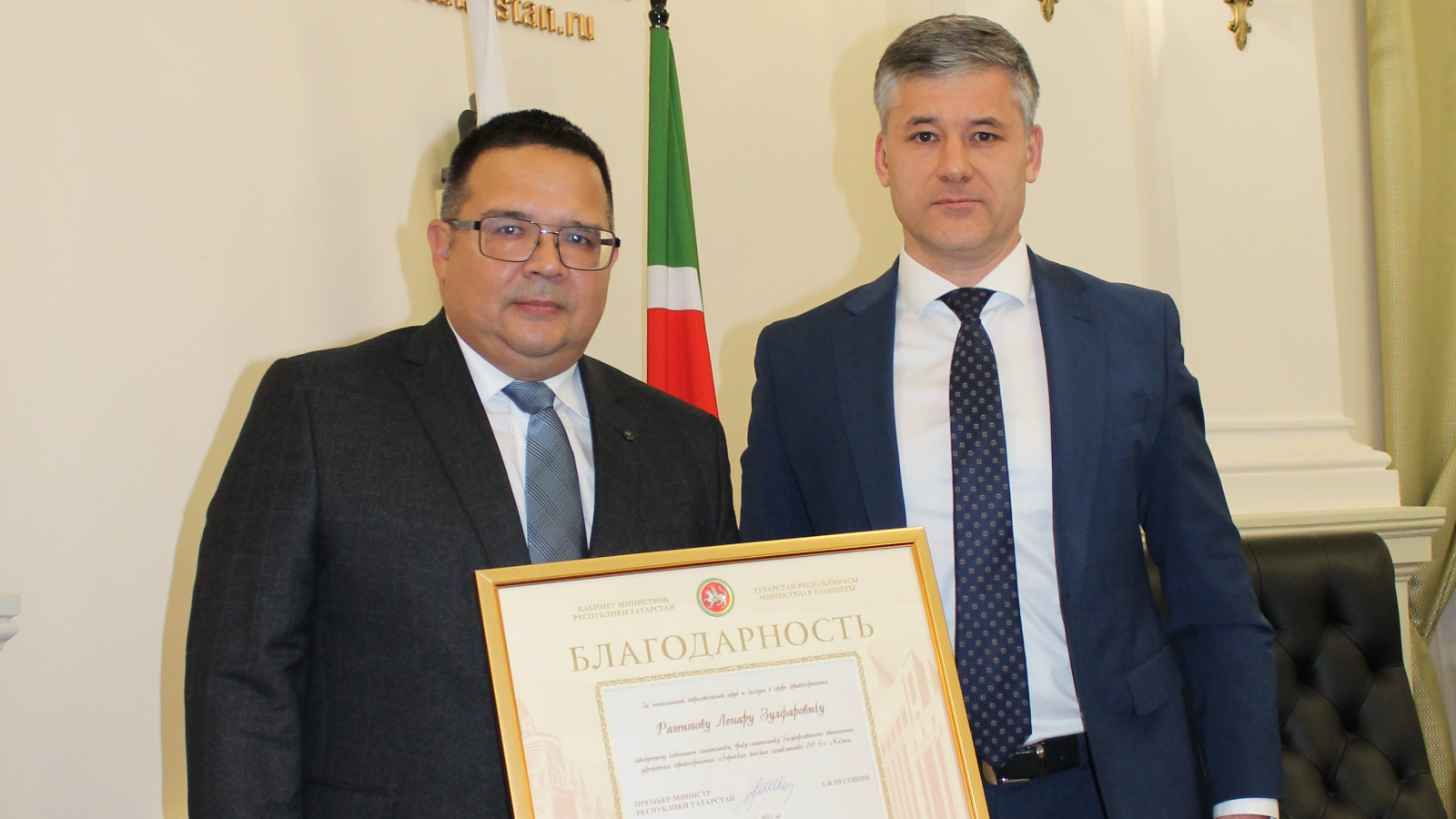 Сегодня заместитель министра Ильдар Разинович Фатихов вручил медику Благодарность Правительства Республики Татарстан за многолетний добросовестный труд и заслуги в сфере здравоохранения.