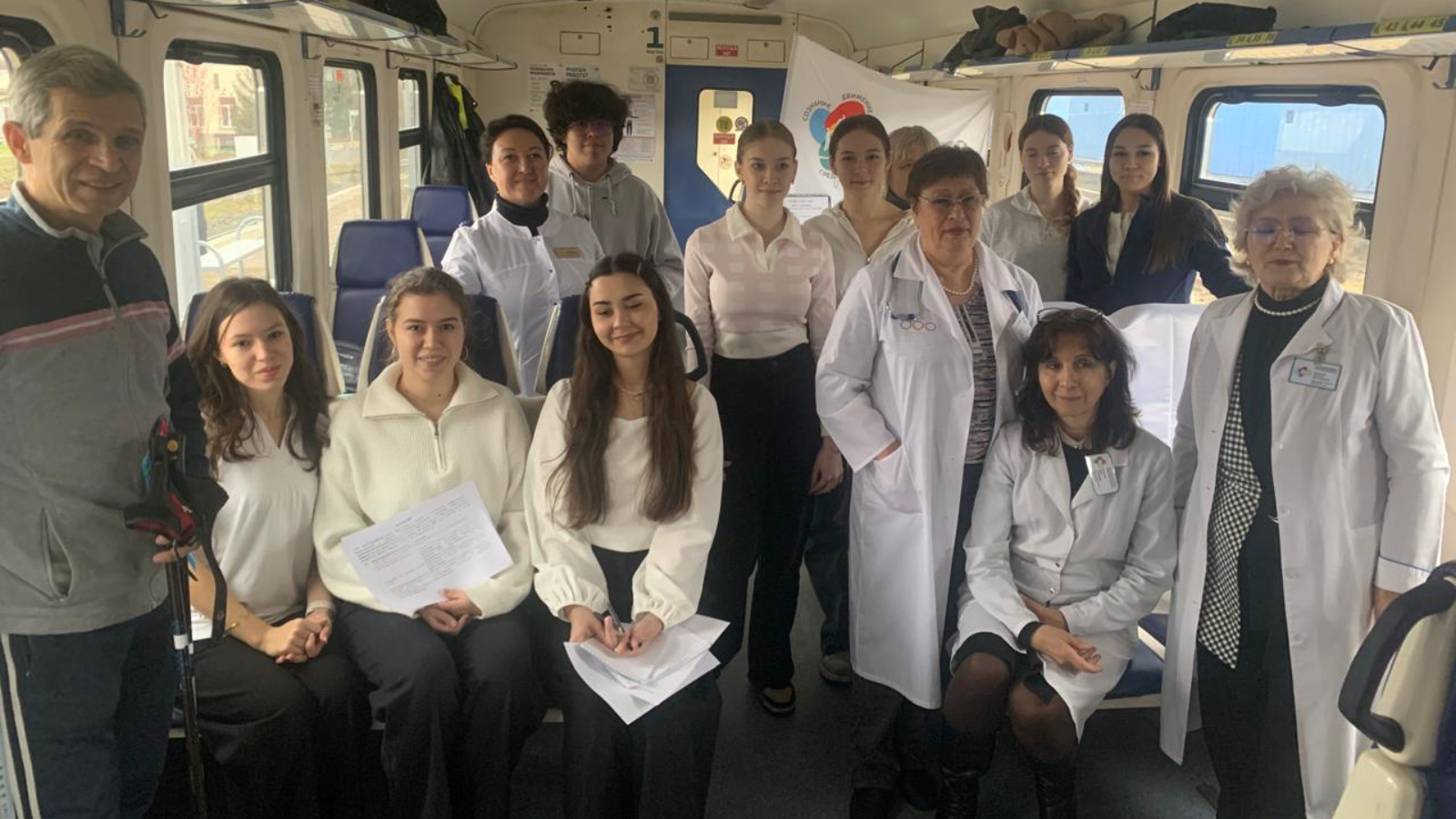 На борту пассажиры могли получить консультации врачей‑терапевтов, сдать экспресс‑анализы крови на глюкозу и холестерин, измерить артериальное давление и индекс массы тела (ИМТ).