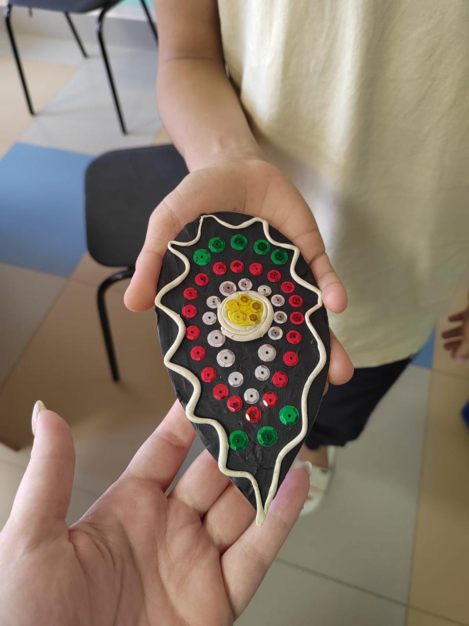 Из пластилина изготовили каплевидные щиты русских богатырей, символизирующие защиту и силу. Этот творческий процесс не только развил мелкую моторику рук, но и позволил детям ощутить себя частью великой истории, почувствовать связь с героями прошлого.