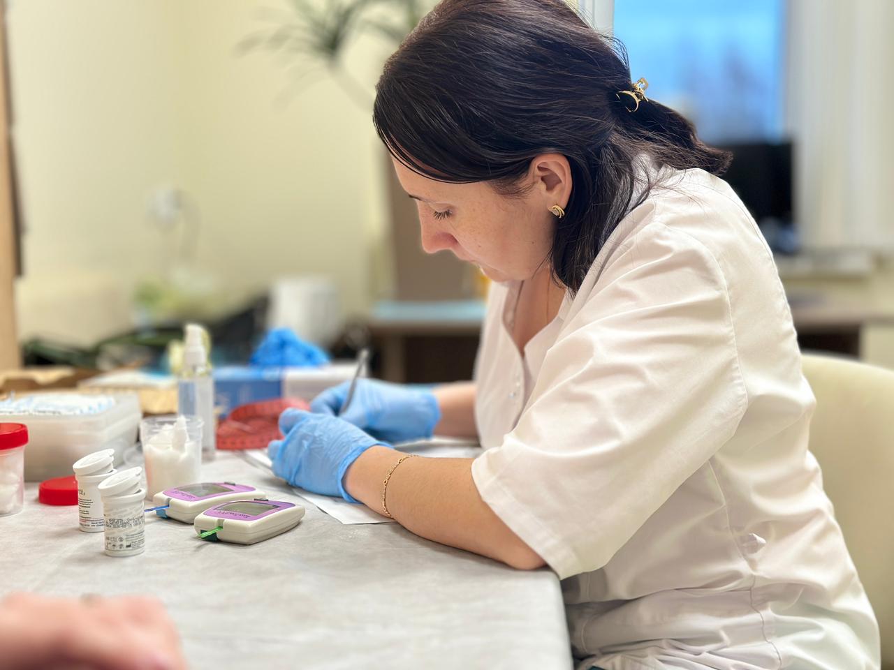 Сегодня проверили факторы риска, определили прогноз состояния здоровья, сотрудники получили рекомендации и индивидуальную программу по здоровому образу жизни, сделали экспресс-анализ для определения общего холестерина и глюкозы в крови; измерили рост, вес, силы кисти;