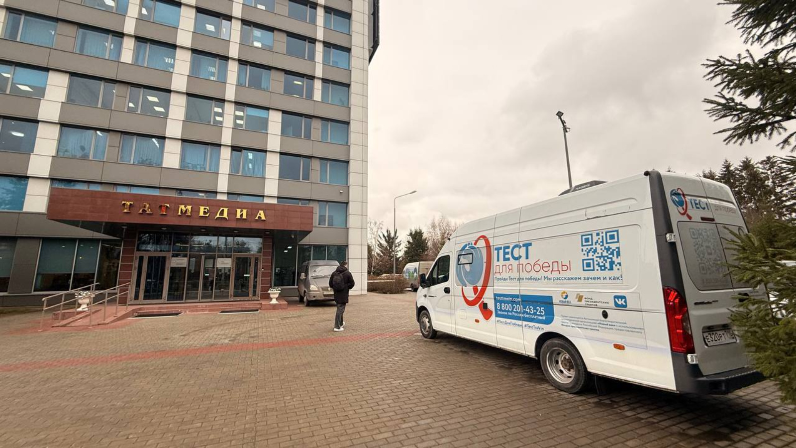 У входа в ТИ была развернута работа мобильного пункта экспресс-тестирования.