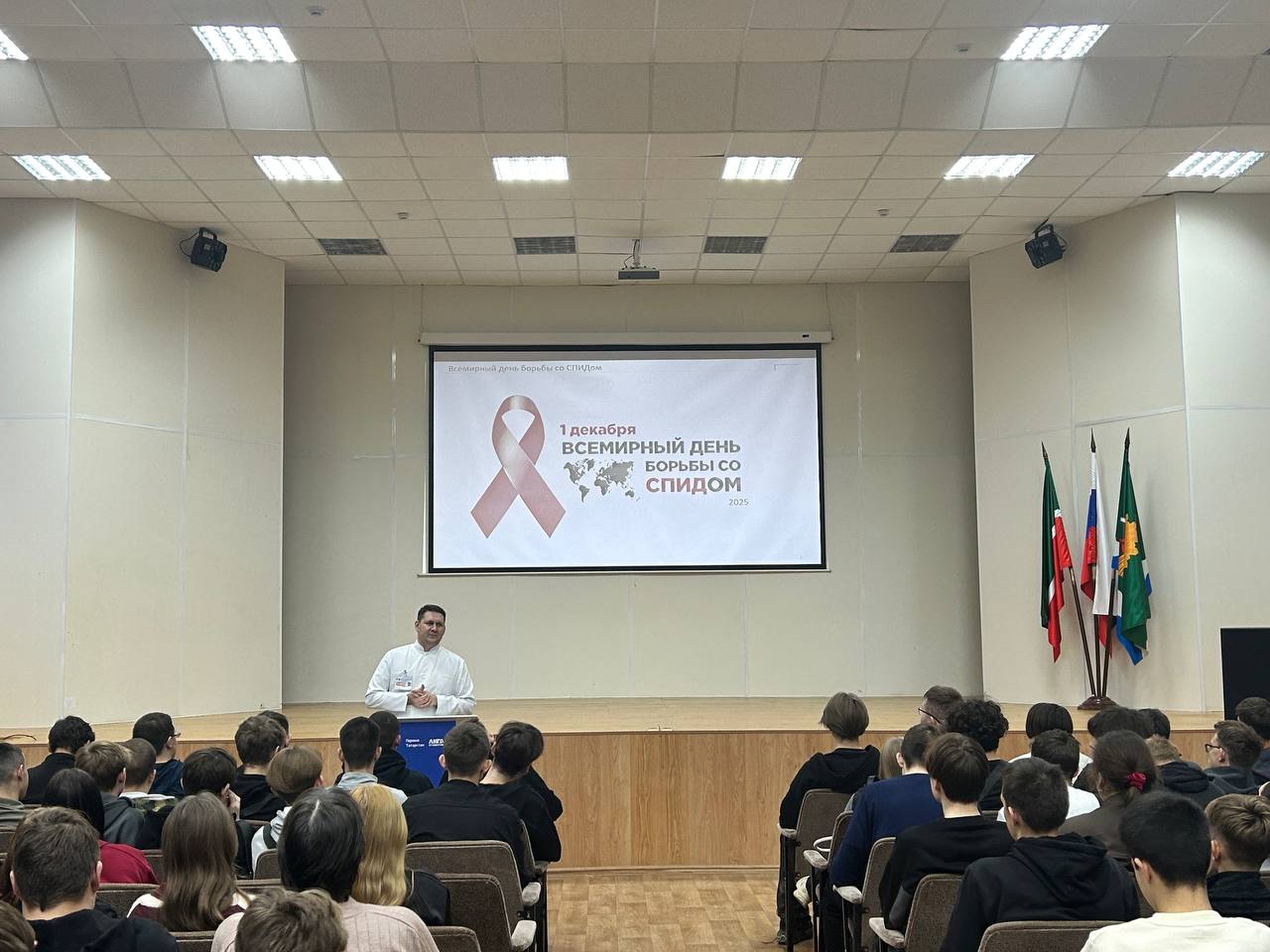 Врач-эпидемиолог ГАУЗ «Мамадышская ЦРБ» Айрат Дамирович Галеев выступил с лекцией перед студентами ГАПОУ «Мамадышский политехнический колледж» на тему «Профилактика ВИЧ-инфекции». В ходе встречи он подробно рассказал о путях передачи вируса, факторах риска и основных мерах профилактики.
