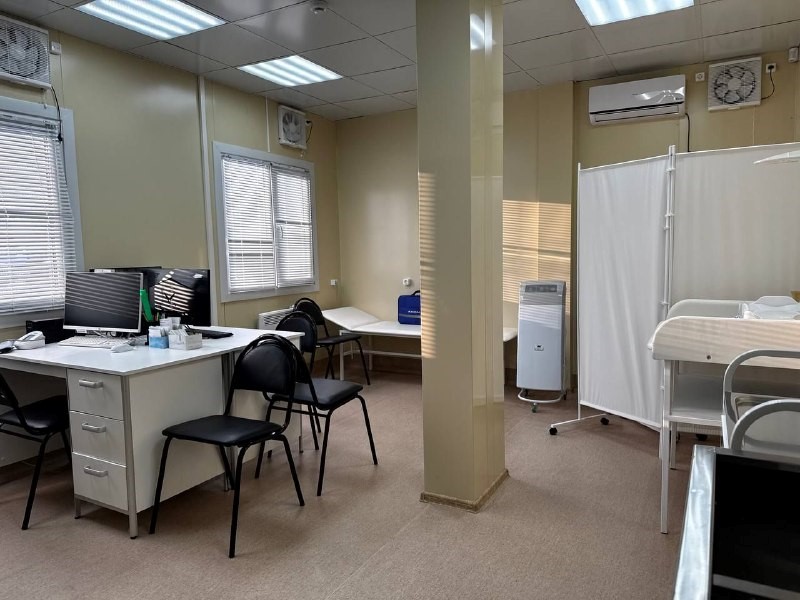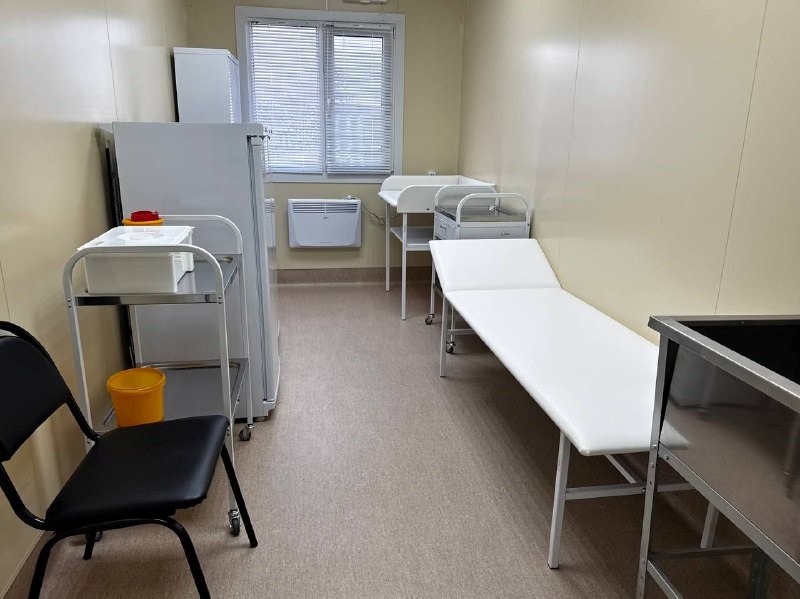 Новый медицинский пункт оснащен современным оборудованием и имеет все необходимое для оказания медицинской и первой неотложной помощи. Здесь есть процедурный кабинет, акушерская смотровая, а также кабинет приема пациентов.