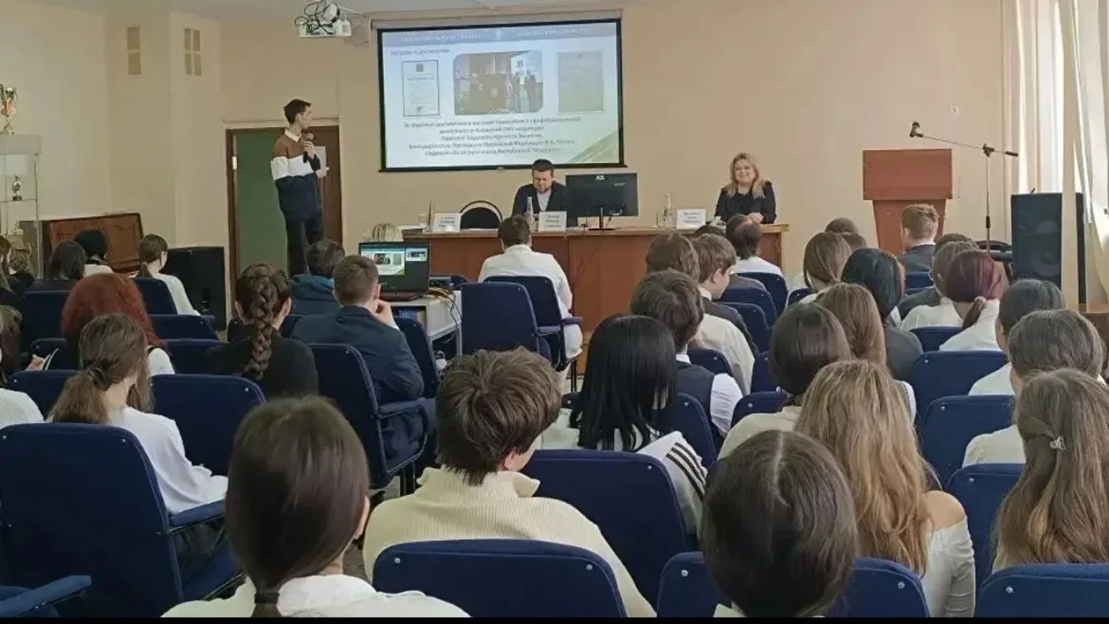 Особый интерес вызвало выступление студента 5 курса КГМУ Тамерлана Ахкамеева, который рассказал о реалиях студенческой жизни и представил видеоматериал о преимуществах обучения в казанском медуниверситете.