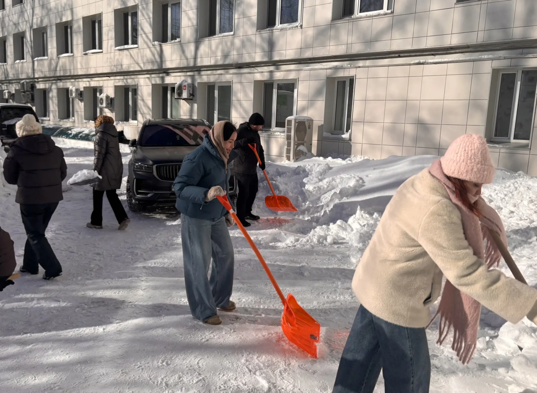 В связи с большим количеством снега, выпавшего за последние дни, сегодня в ДРКБ прошел средник по уборке территории. Сотрудники больницы организованно вышли на улицу, убрали снег с пешеходных дорожек, входных групп и расчистили основные подходы к зданиям детской больницы.