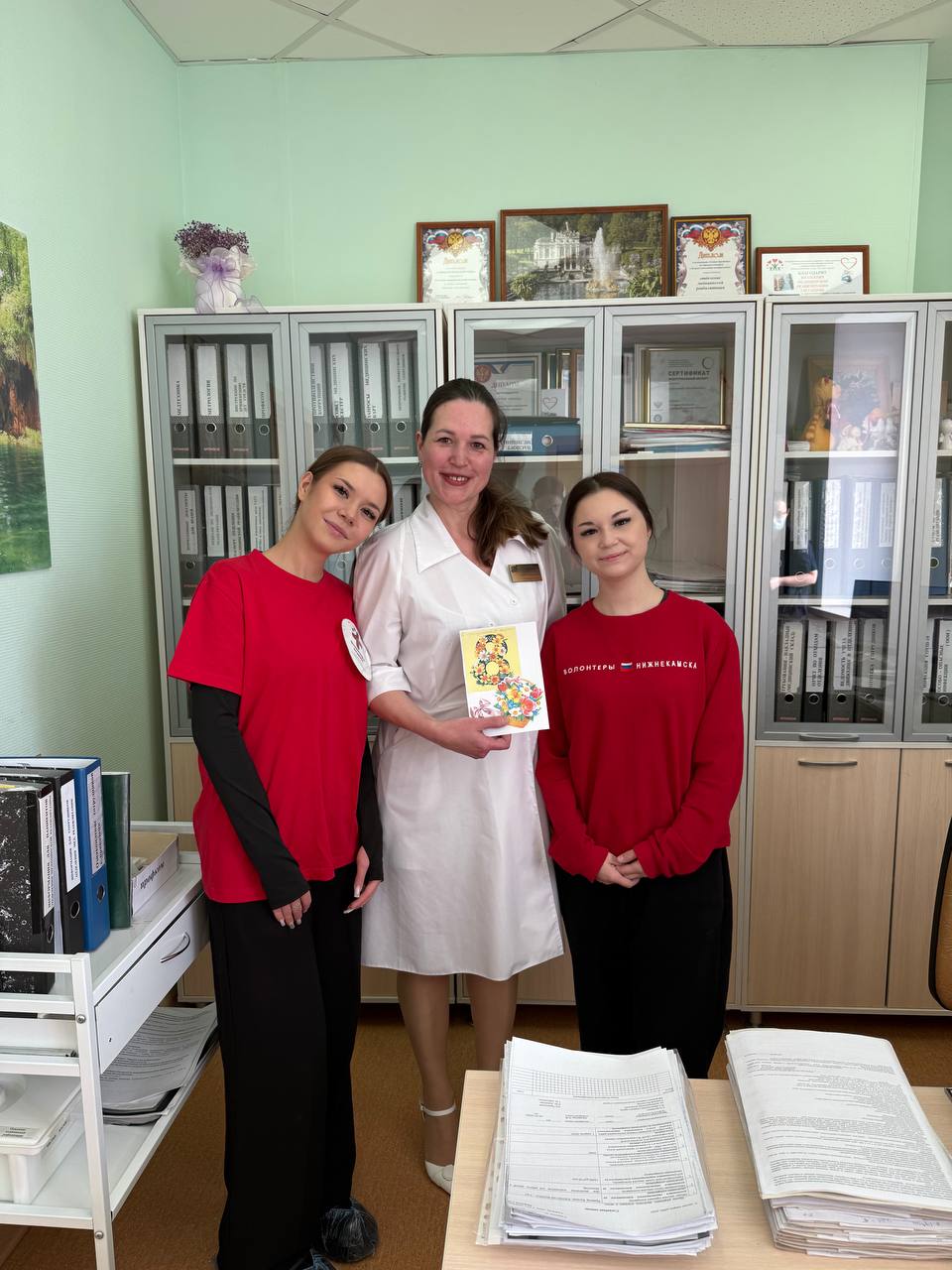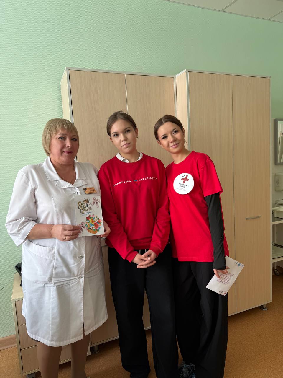 Волонтёры-медики Нижнекамского медицинского колледжа в преддверии Международного женского дня поздравили сотрудниц ГАУЗ «НЦРМБ» с приближающимся праздником.
