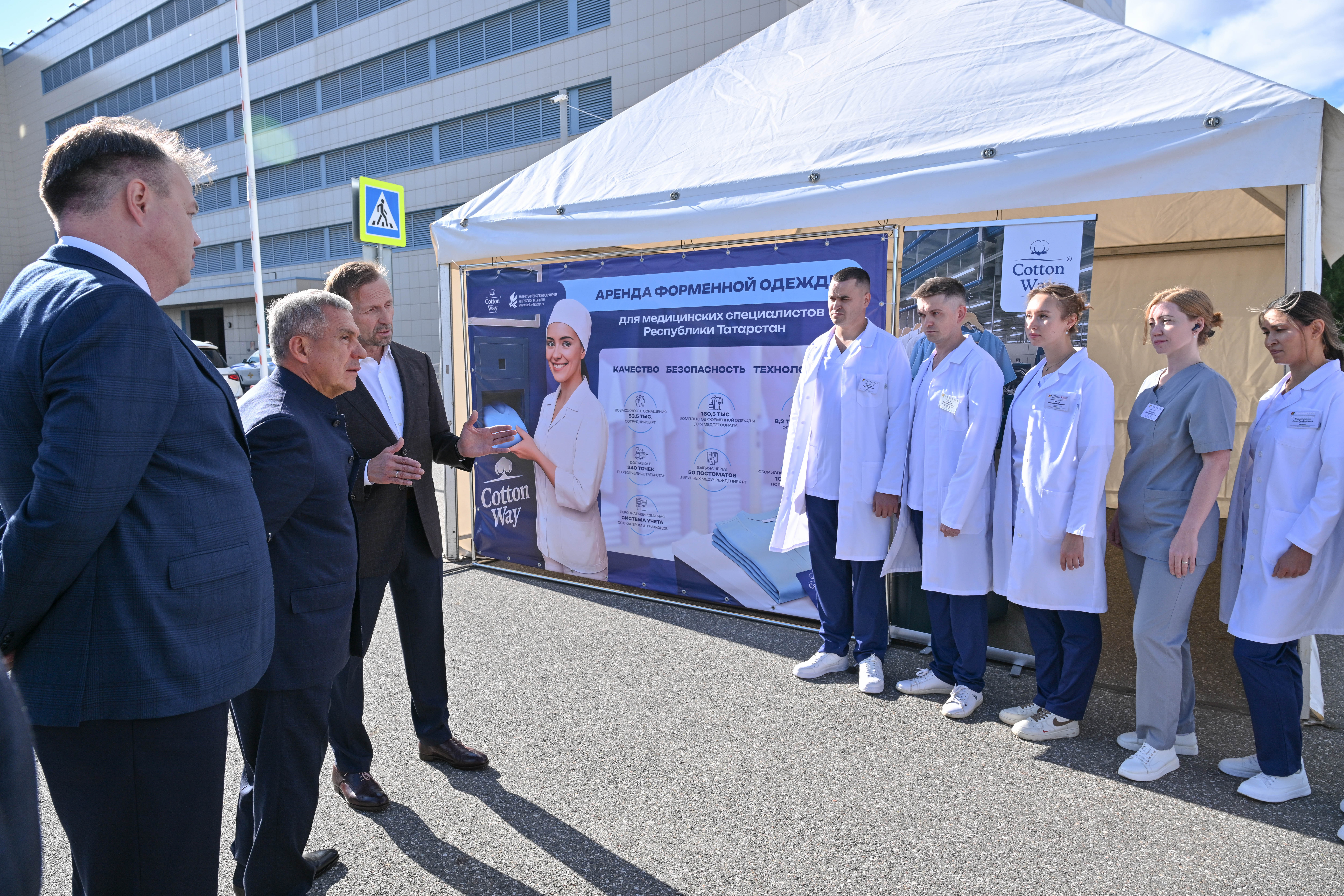 Пилотный проект, охватывающий врачей, средний и младший медицинский персонал медучреждений, был успешно реализован в 2025 году в Клинической больнице №2 Казани и Детской республиканской клинической больнице. Каждому сотруднику была предоставлена новая персональная форма, в клиниках установили автоматизированные аппараты по приему использованной одежды, системы хранения с индивидуальными ячейками.