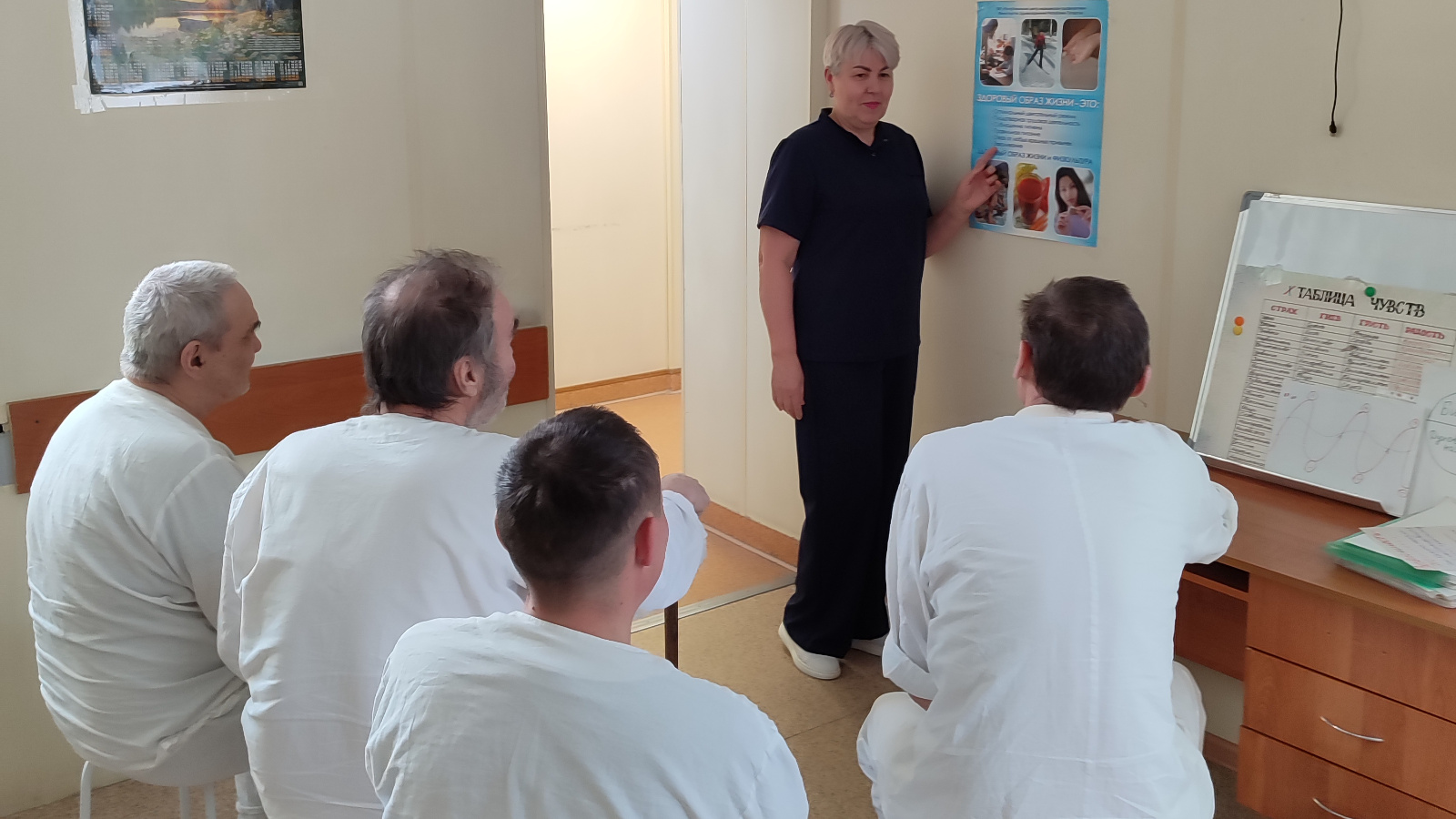 Находясь на стационарном лечении, пациенты начинают задумываться о состоянии своего организма и на какое-то время формируется «страх за здоровье». В ходе профилактических лекций у них появляется возможность узнать, как предотвратить дальнейшие осложнения, вызванные алкоголем. Подобные беседы направлены на повышение осведомленности пациентов о мерах профилактики и укрепления здоровья, что является неотъемлемой частью комплексного лечения в наркологической службе.