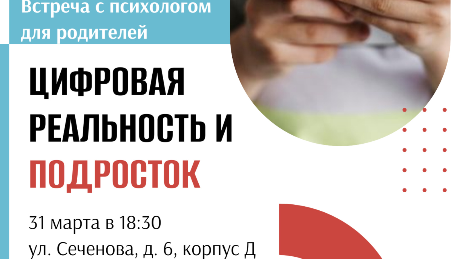 31 марта в 18:30 в Республиканском клиническом наркодиспансере пройдет открытая встреча для родителей на тему «Цифровая реальность и подросток».