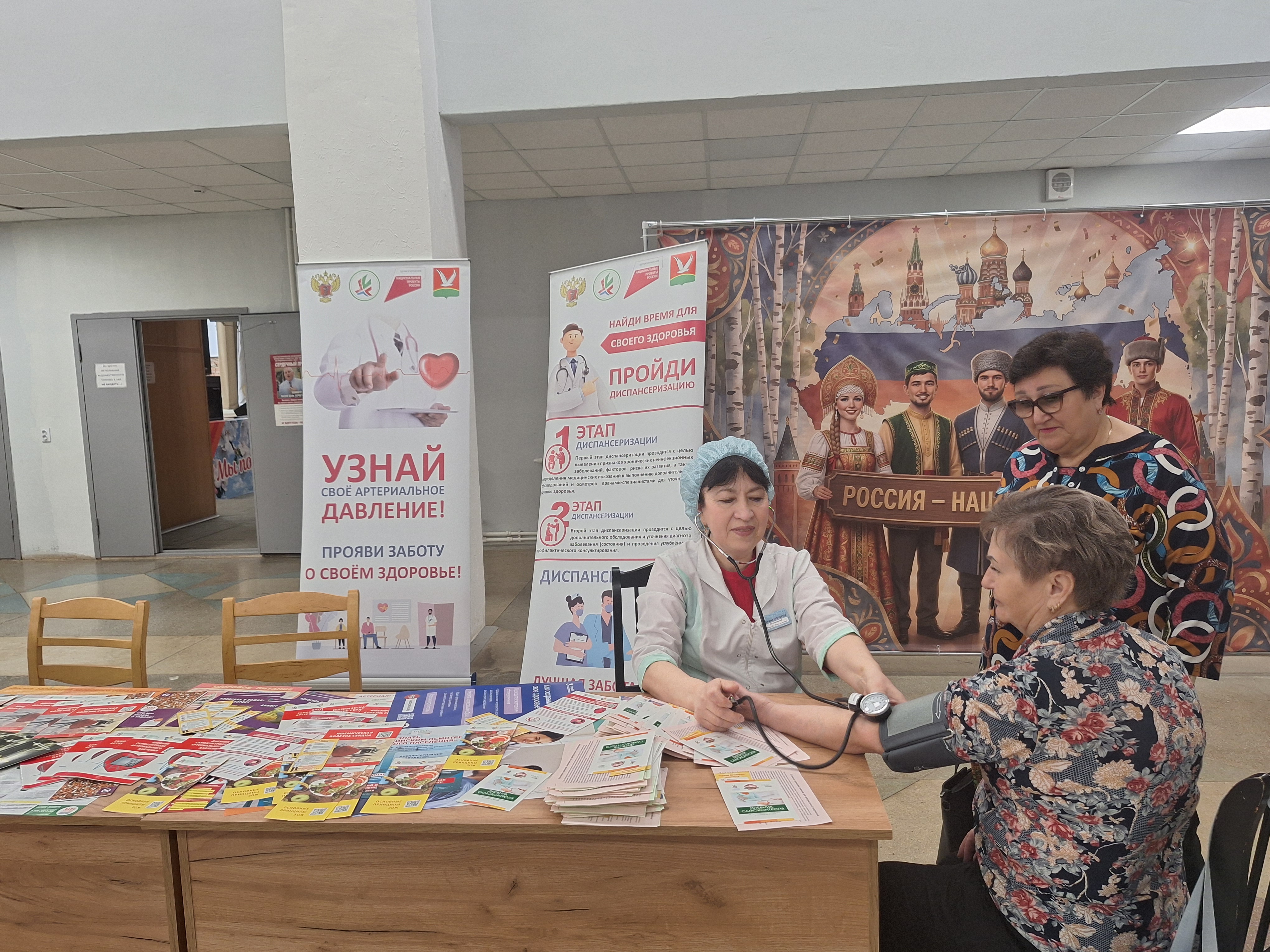 В Актюбинском Доме культуры им. Ю. Гагарина Азнакаевского муниципального района медицинские работники Азнакаевской ЦРБ провели выездное занятие Школы здоровья для пациентов с артериальной гипертонией.
